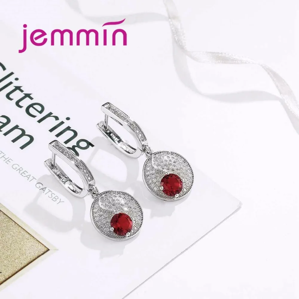 925 Silver Wedding Jewelry Set For Brides Accessory Red Crystal Statement Necklaces And Earrings Sets Woman Engagement
