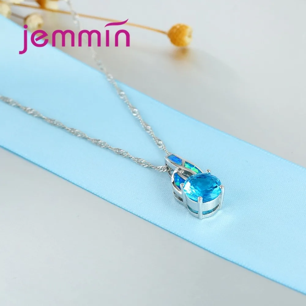 3 Colour 925 Sterling Silver Necklace Fine Opal Pendant Necklace For Women Austrian Crystal Engagement Wedding Jewelry