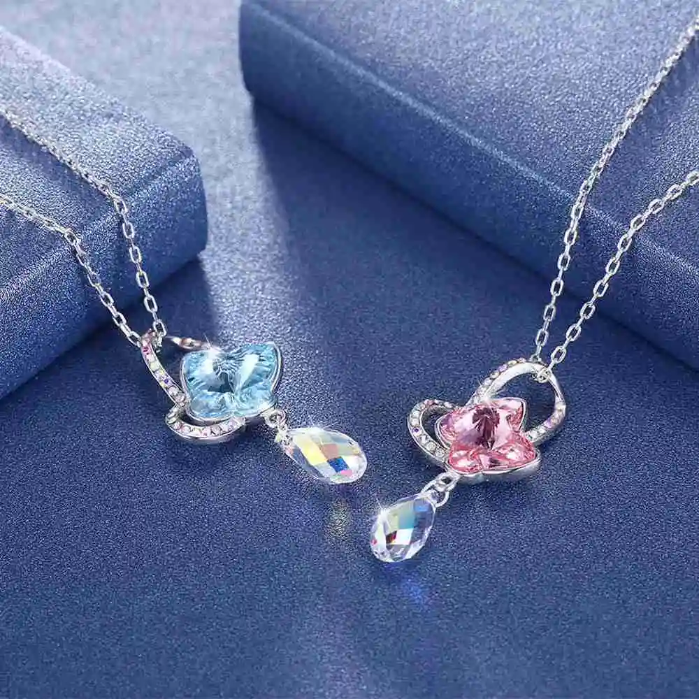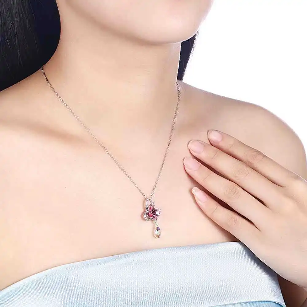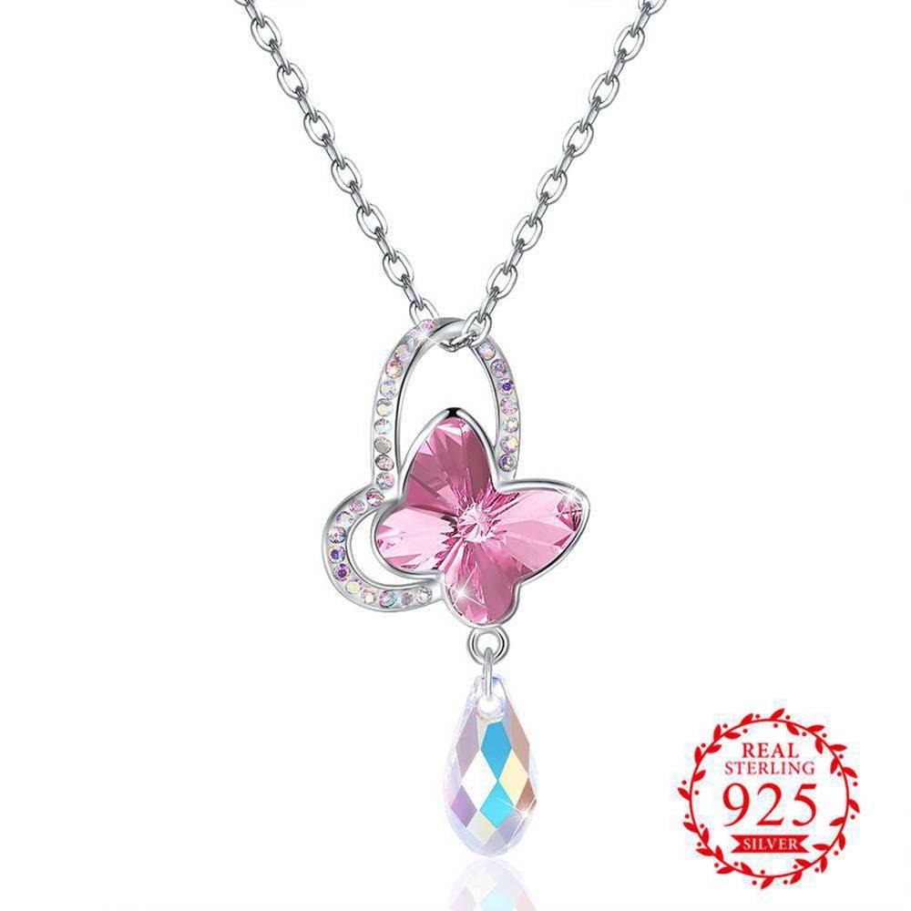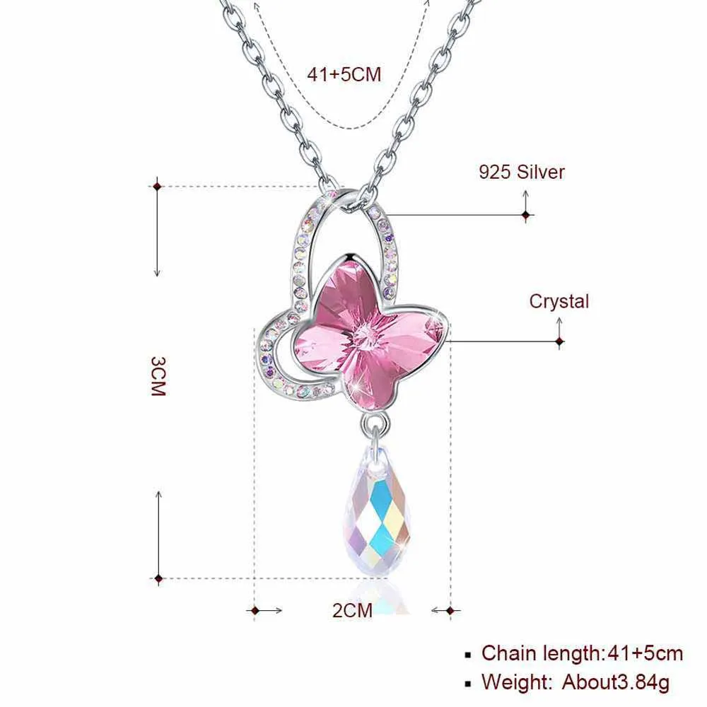 Unique Design Sweet Romintic Necklace Heart&Butterfly&Drop Pendant Top Quality AAAAA Austrian Crystal 925 Sterling Silver