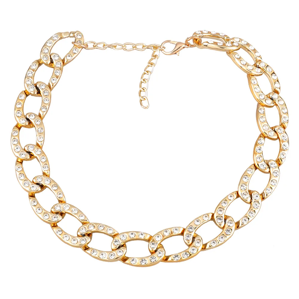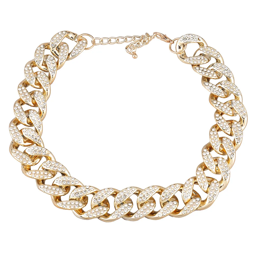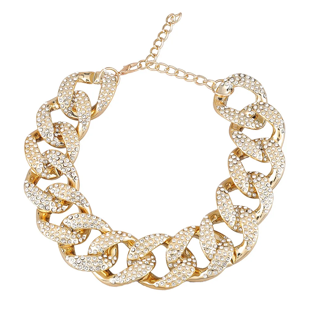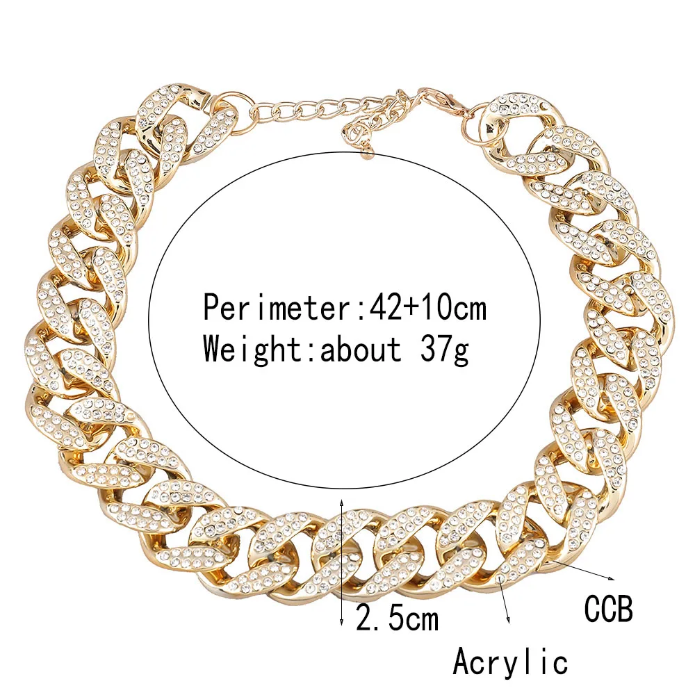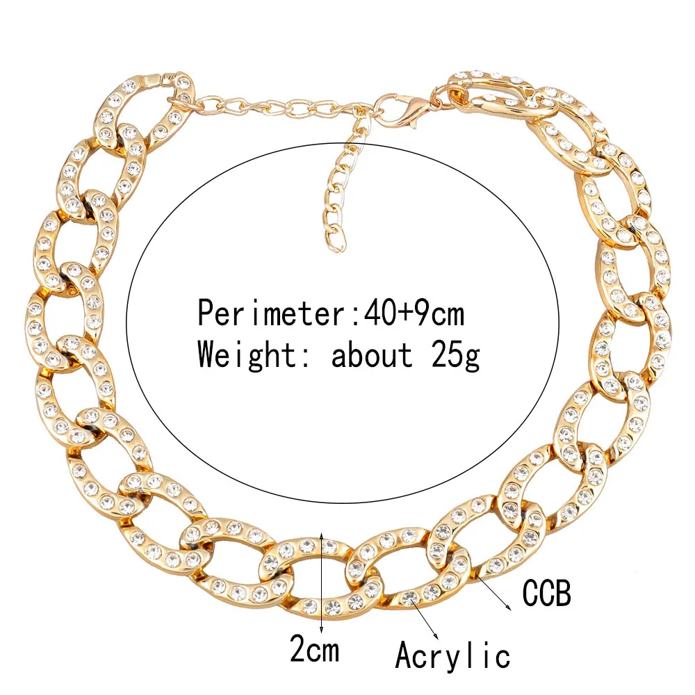 Jewelry Accessories Gold Color CCB Rhinestone Super Flash Chain Women Choker Neck Collar Statement Chunky Necklace Gift