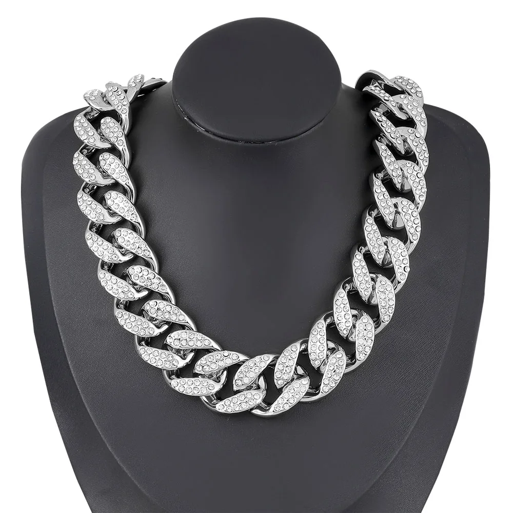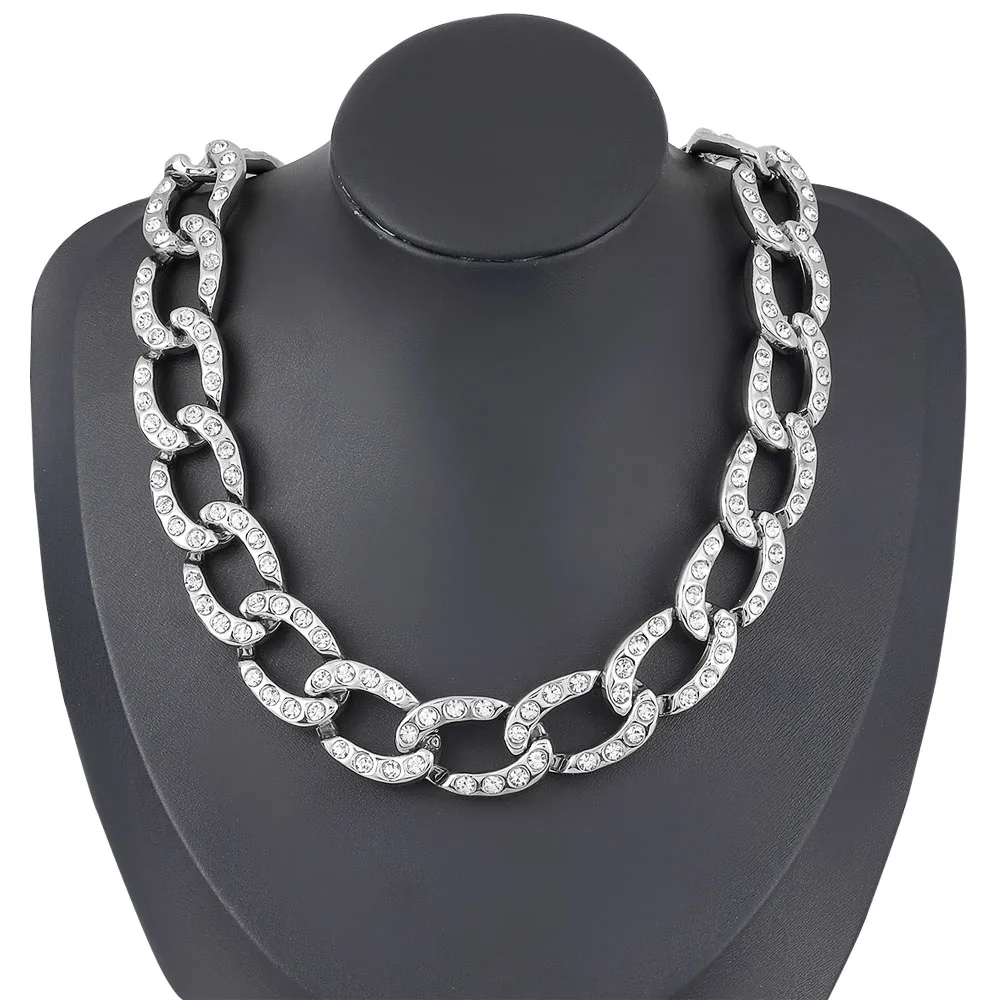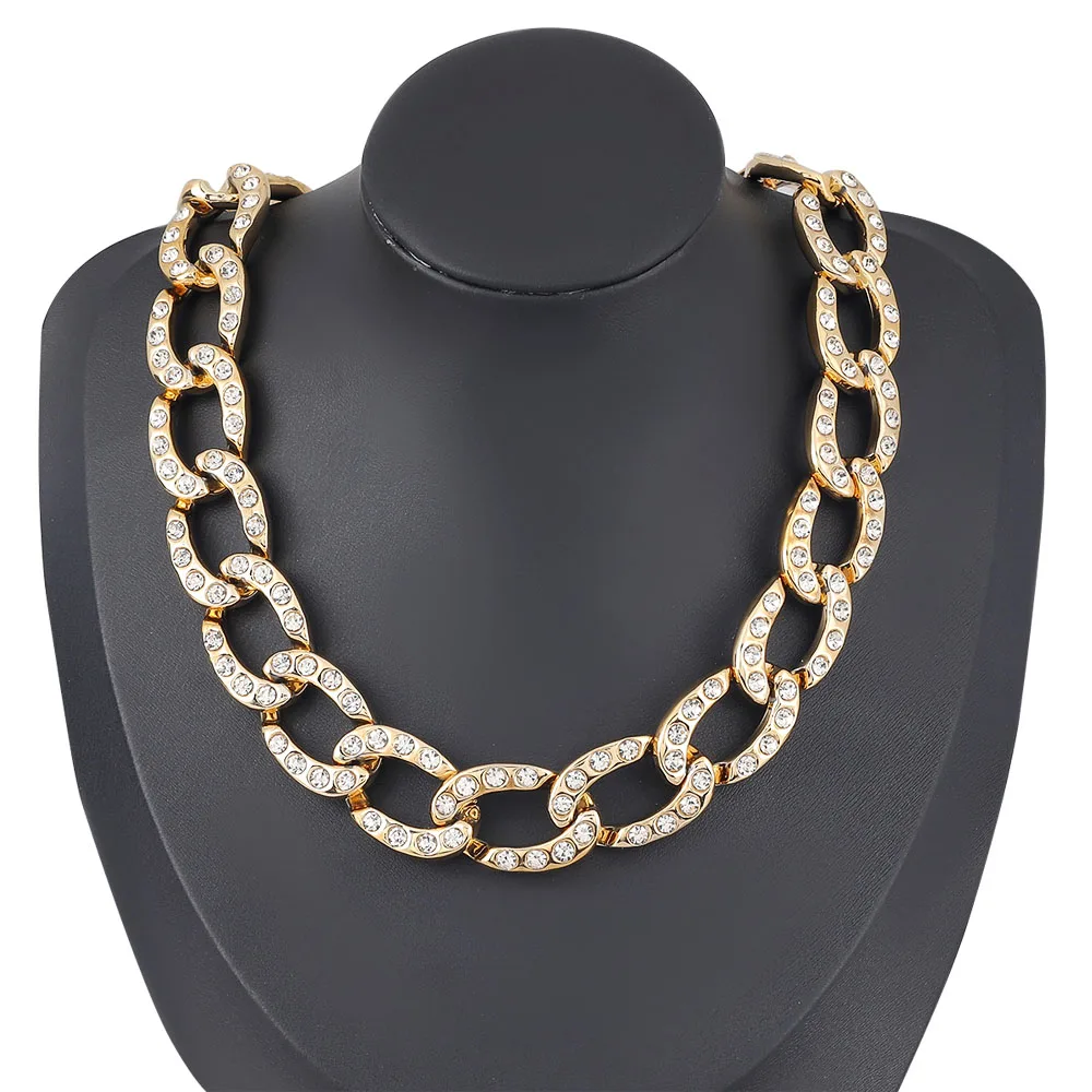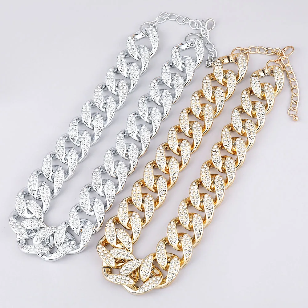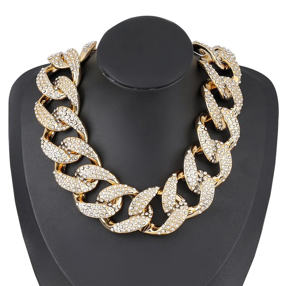 Jewelry Accessories Gold Color CCB Rhinestone Super Flash Chain Women Choker Neck Collar Statement Chunky Necklace Gift