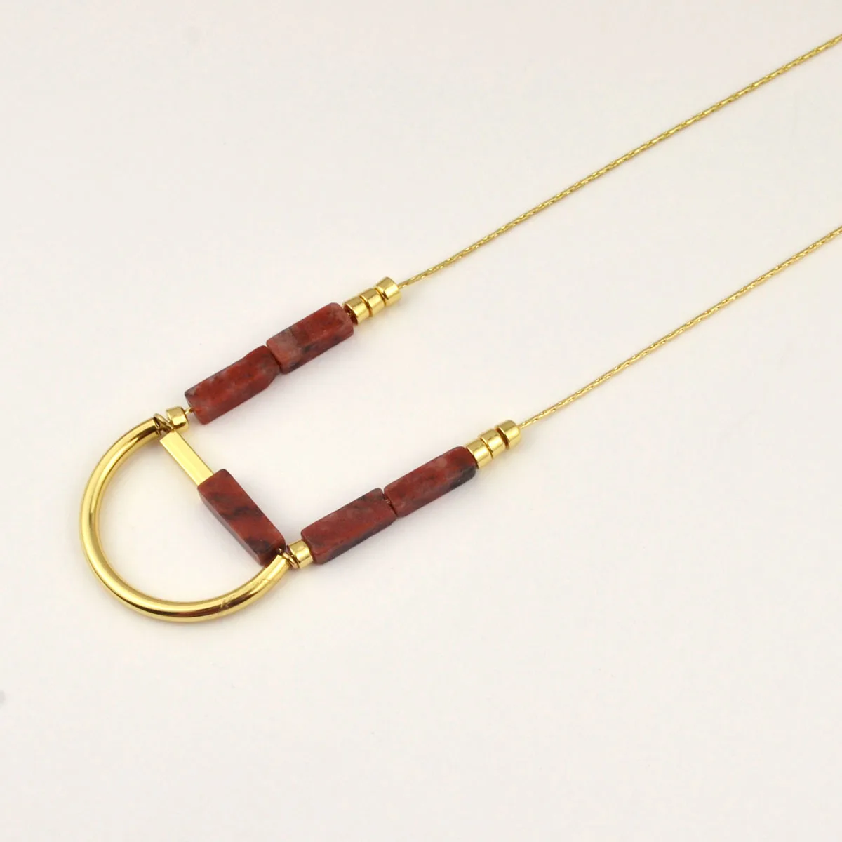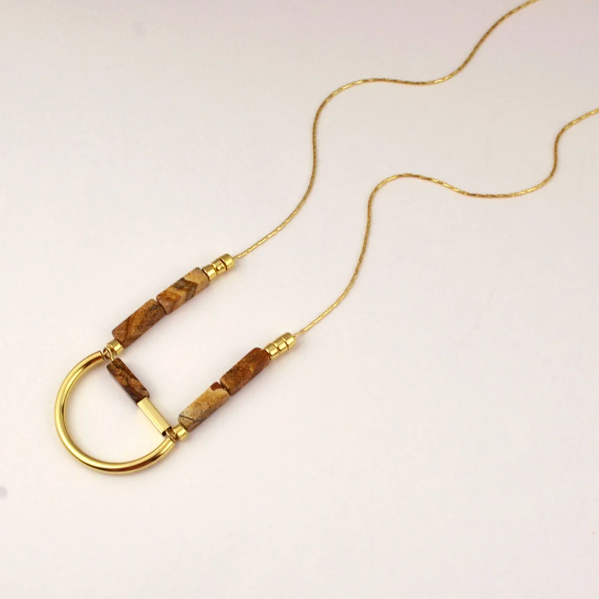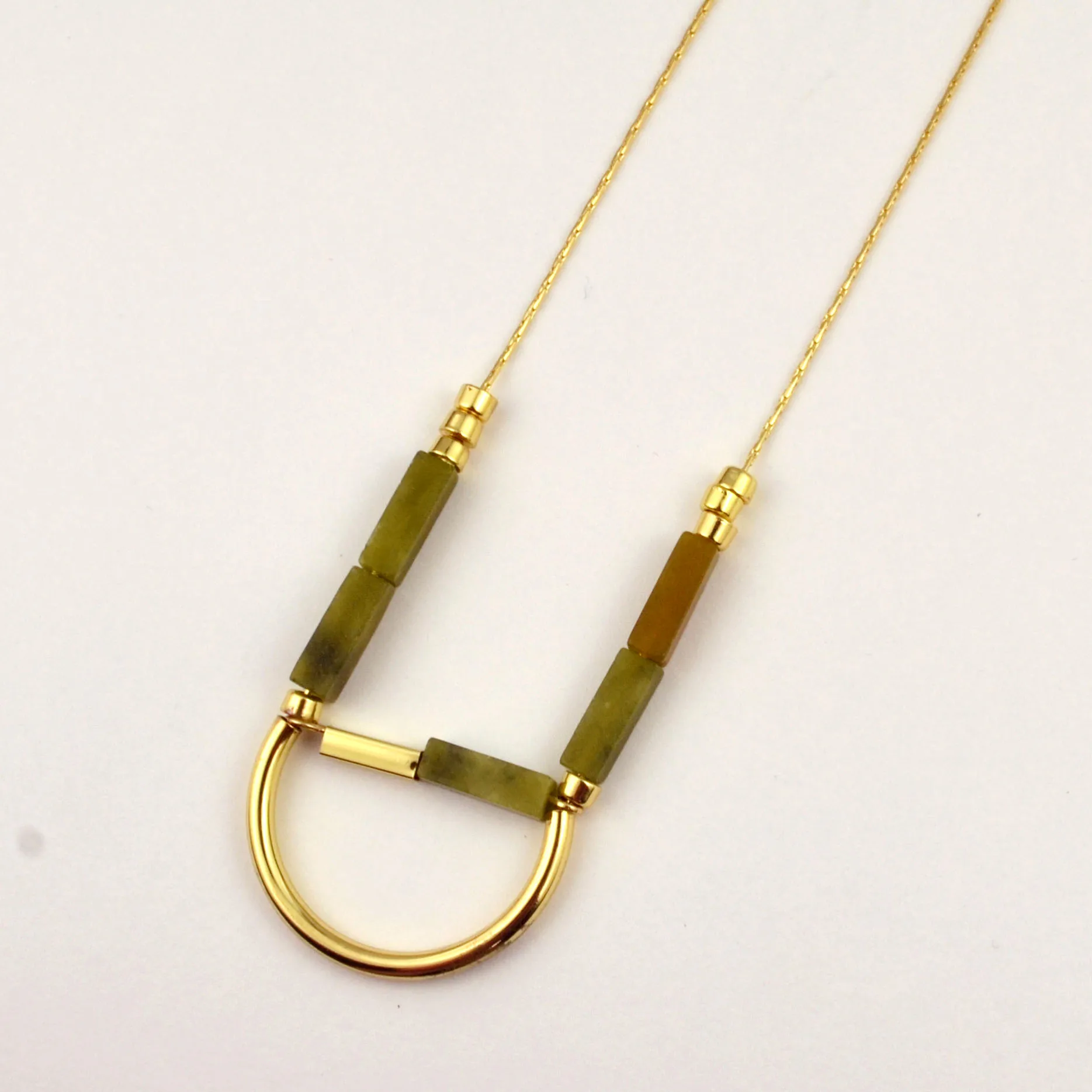 Jewelry Metal U Shape Tube Pendant-Natural Amazonite Stone Delicate Necklaces for Women