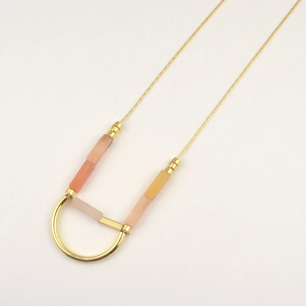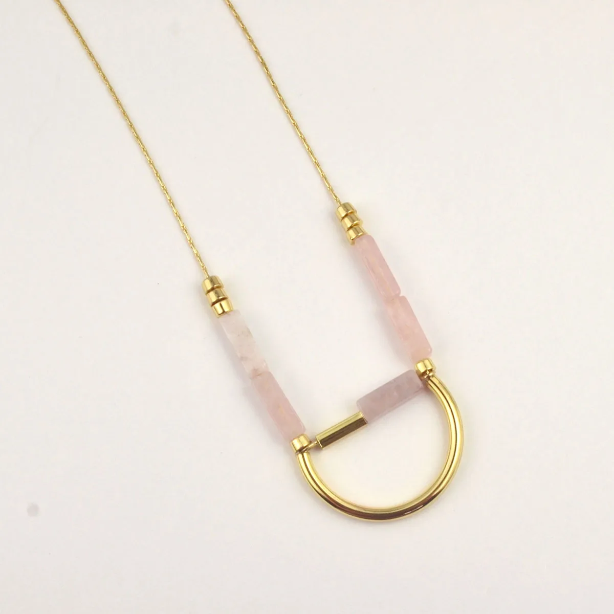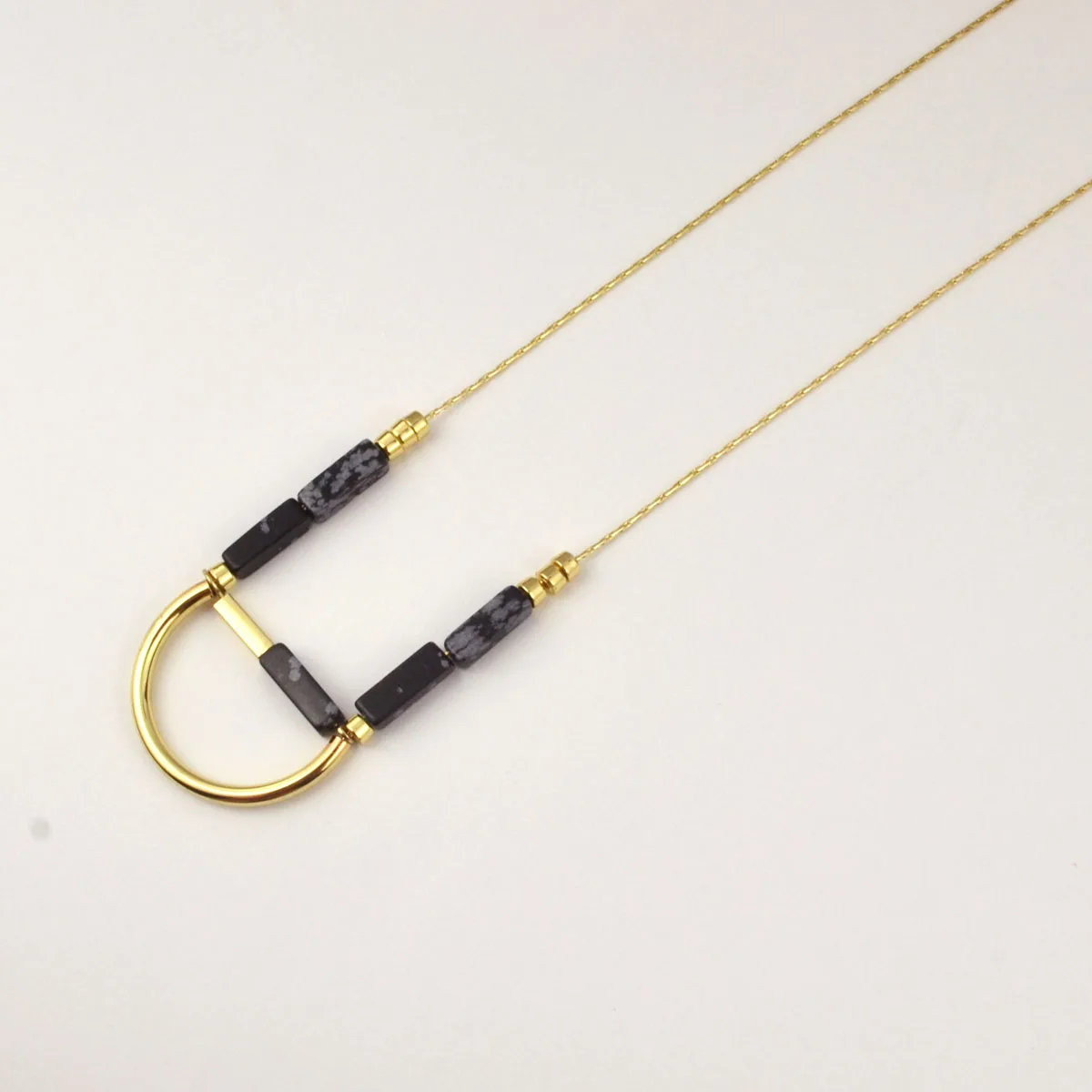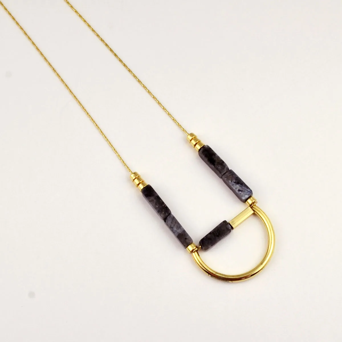 Jewelry Metal U Shape Tube Pendant-Natural Amazonite Stone Delicate Necklaces for Women