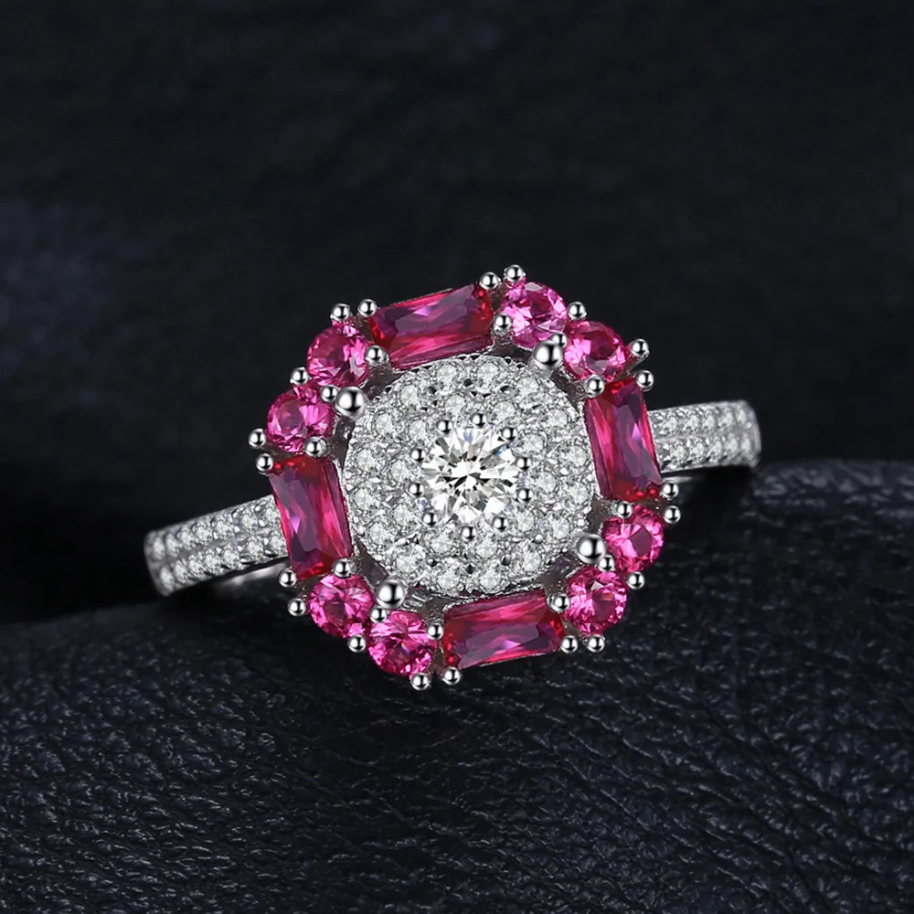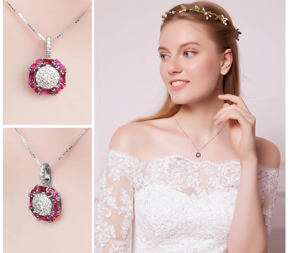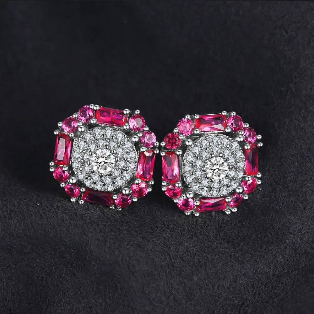 3ct Created Ruby Stud Earrings Ring Pendant Necklace Fine Jewelry Sets 925 Sterling Silver 45cm Chain For Women