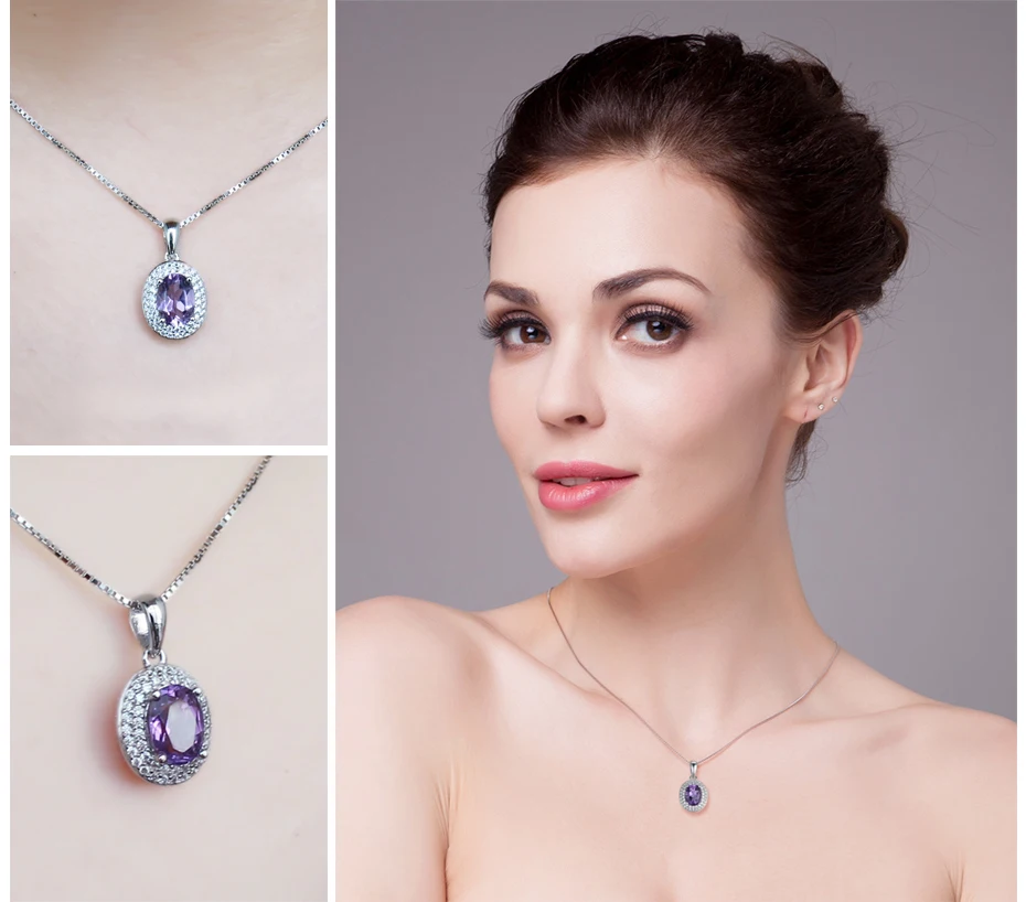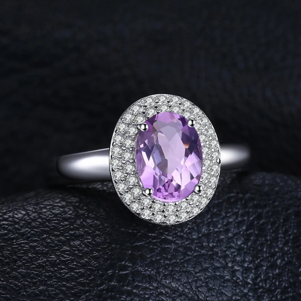 Classic 4.3 Genuine Amethyst Halo Ring Pendant Necklace Stud Earrings Jewelry Sets 925 Sterling Silver 45cm chain