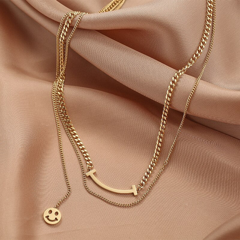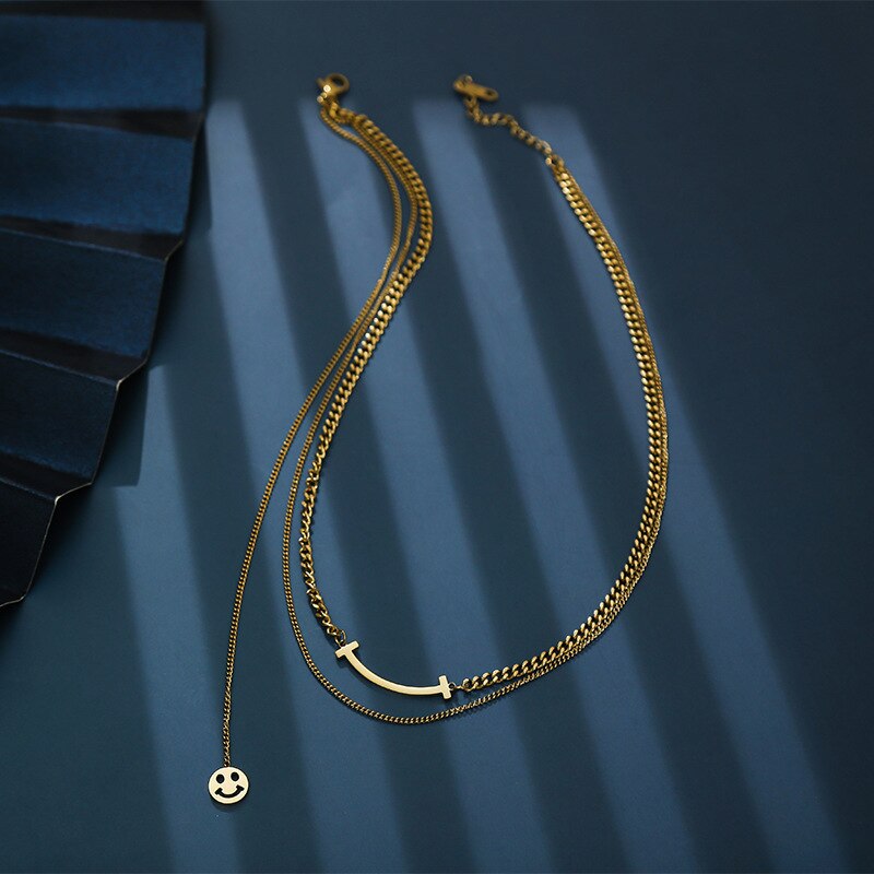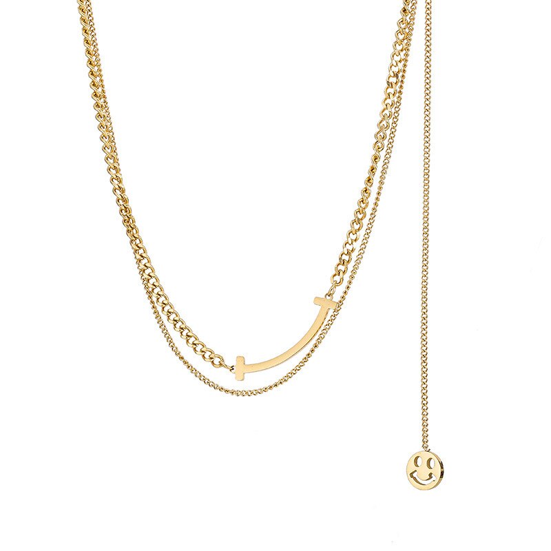 JewelryRose gold titanium steel necklace,Double smile titanium steel clavicle necklace,