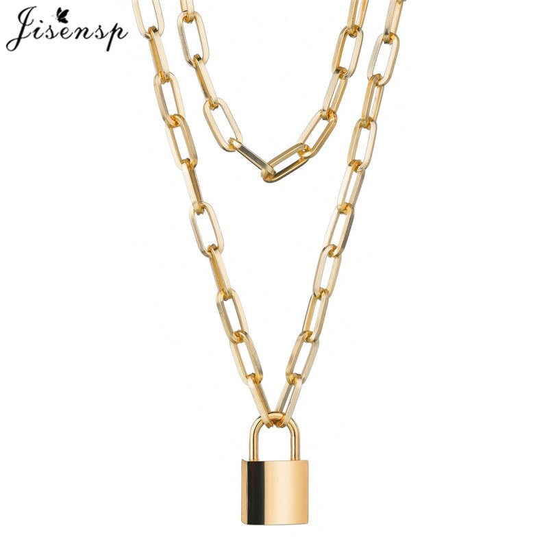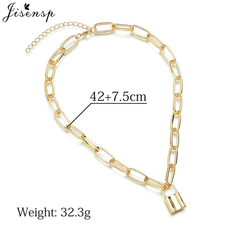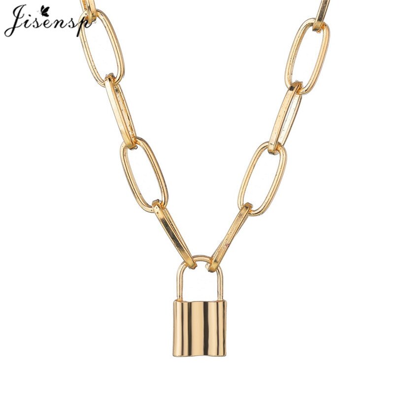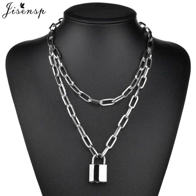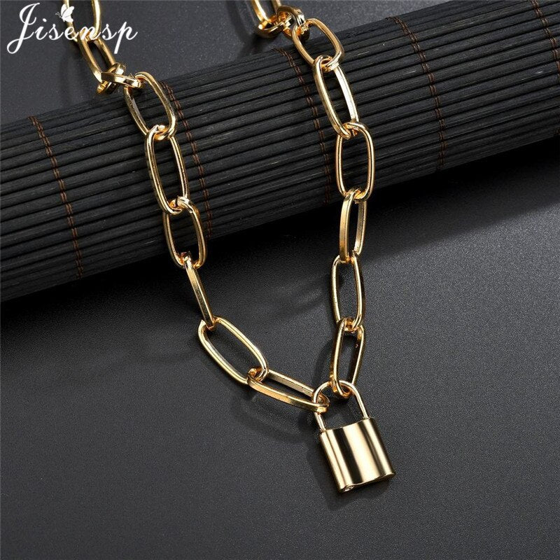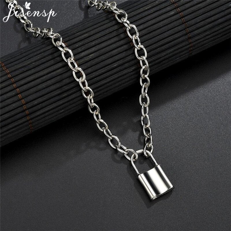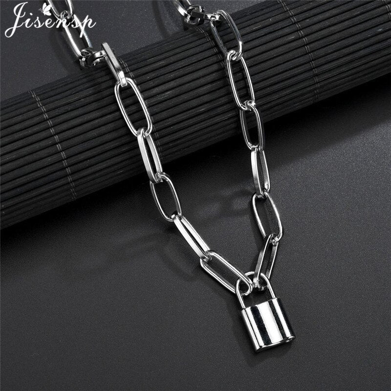 Jisensp Lock Pendants Punk Necklaces for Women Men Exaggeration Personality Thick Chain Padlock Necklace Gothic Collier Femme