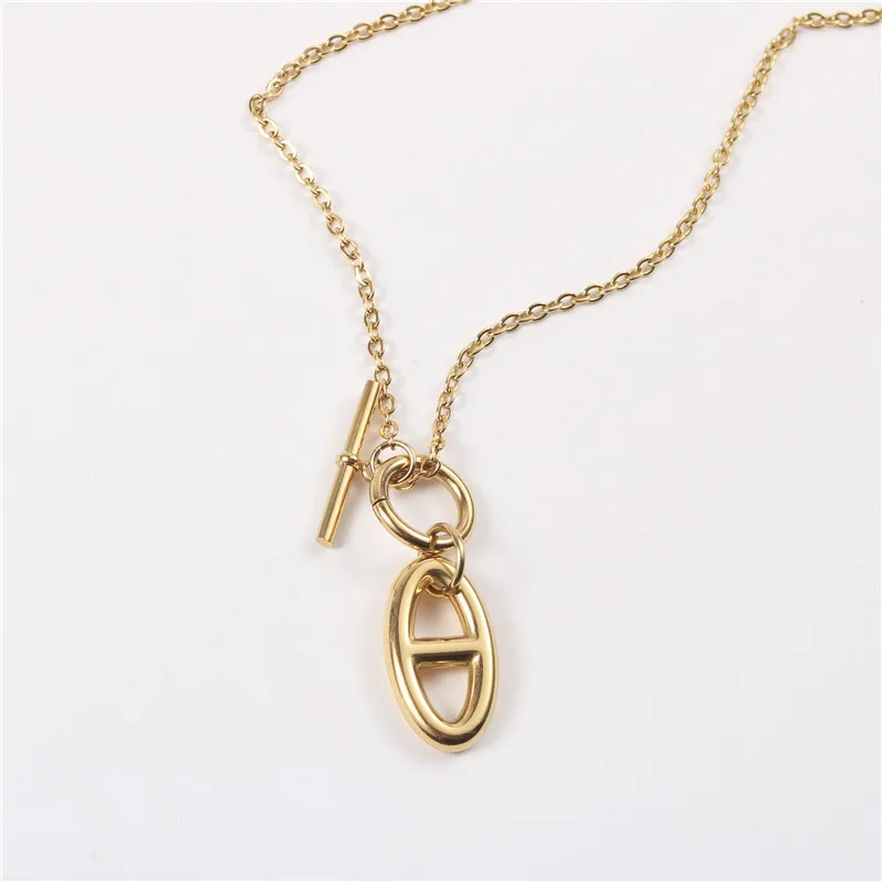 JOOLIM Jewelry Gold Finish Pig Snout Toggle Necklace Stainless Steel Necklace