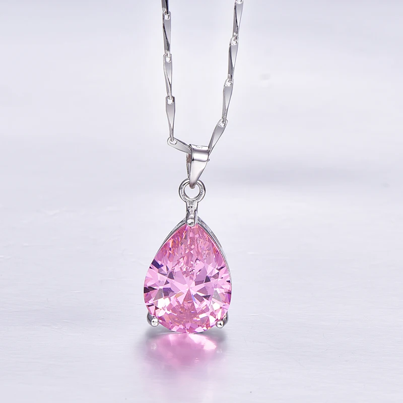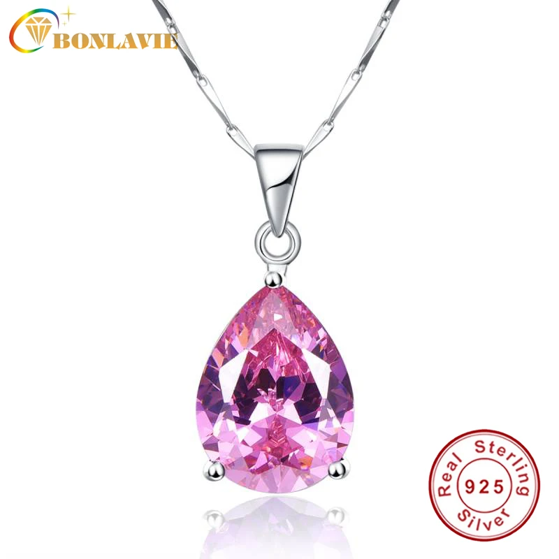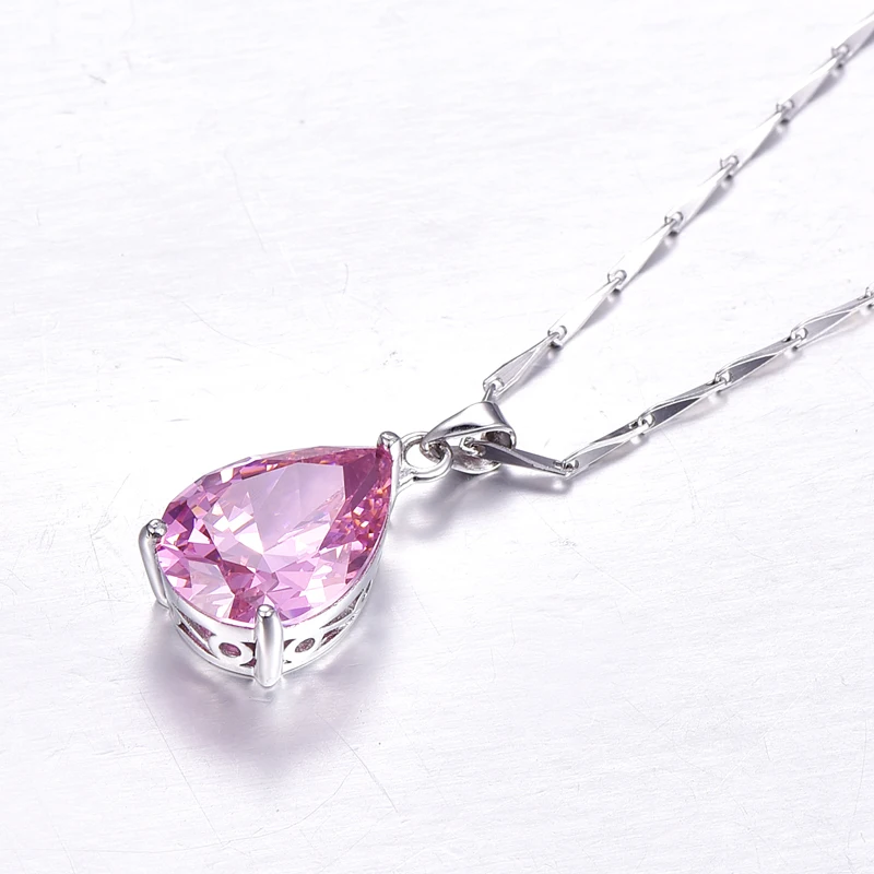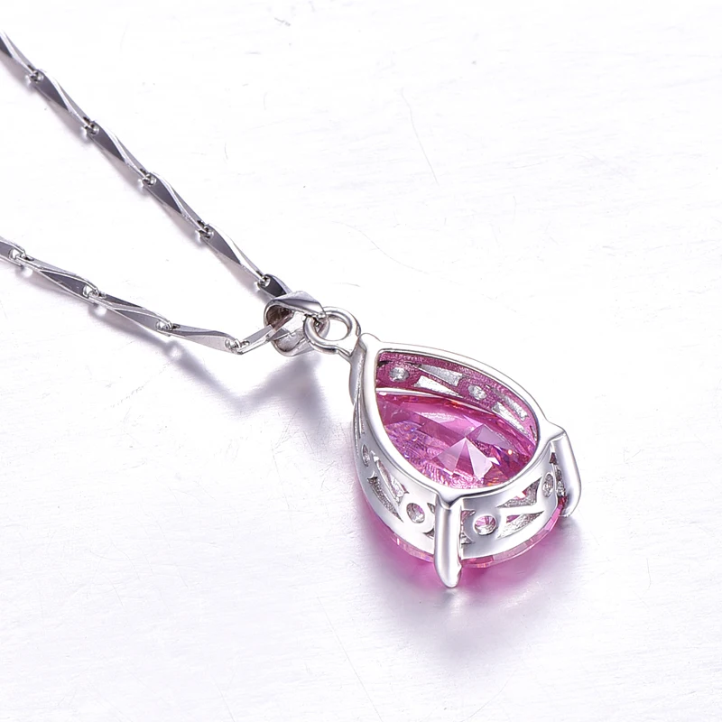 Silver Chain 14Ct Oval Water Drop Pink Topaz Necklaces & Pendants Genuine Silver 925 Jewelry Charms Engagement Wedding Jewelry