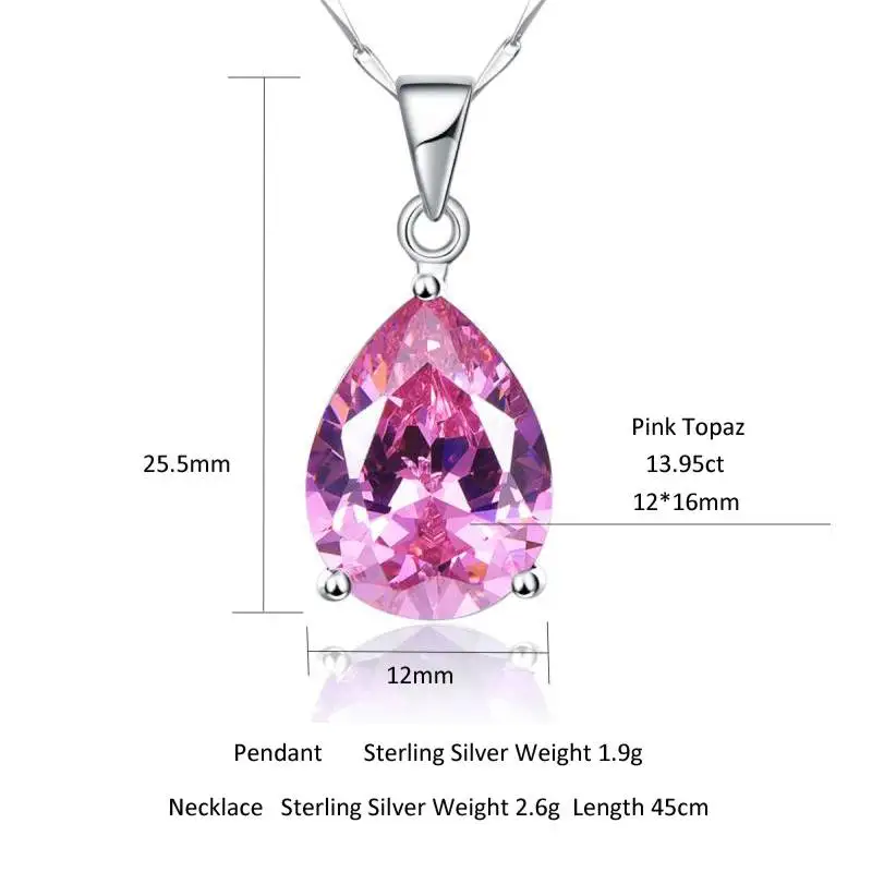925 Sterling Silver Jewelry set Mystic Topaz set Pink Water Drop Desgin Necklace Earring Ring sets Women Jewelry set