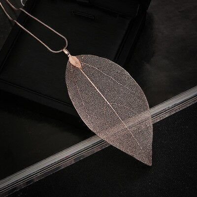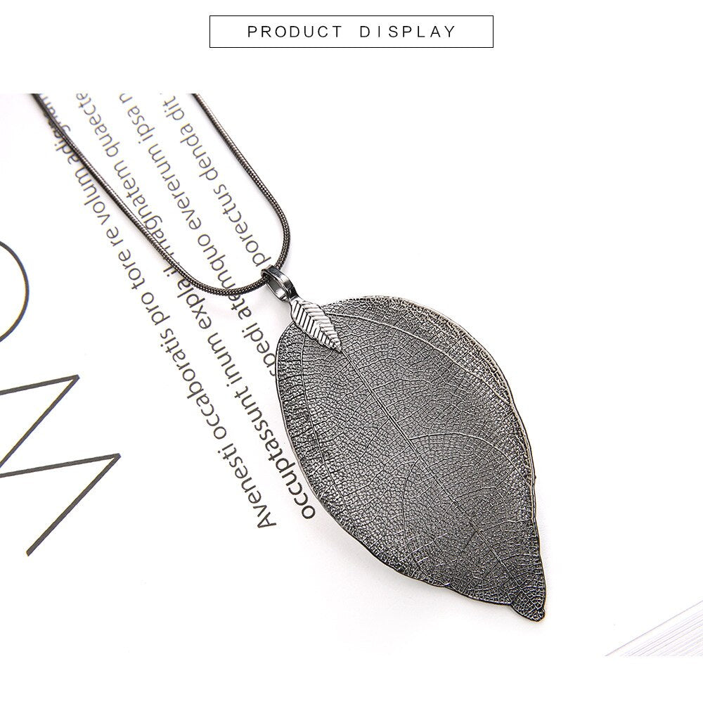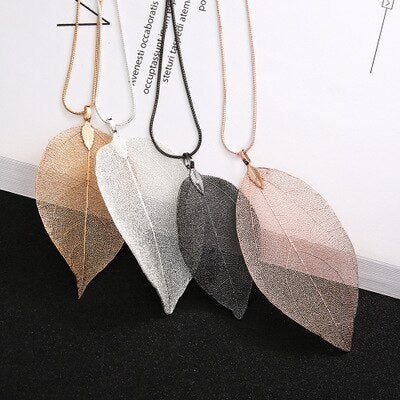 JunKang-Colgante de hoja auténtica natural para mujer, collar largo, jersey con personalidad, cadena, joyería, regalos