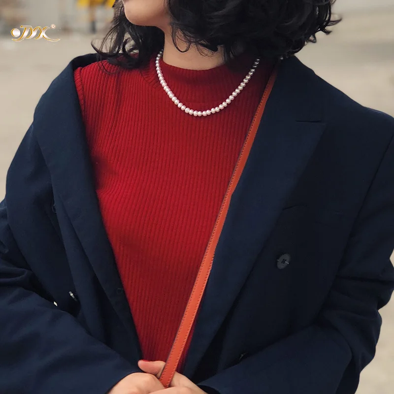 Small Pearl Necklace Natural Cultured Choker Necklace for Girl Real Pearl Party Necklace (5-6mm)