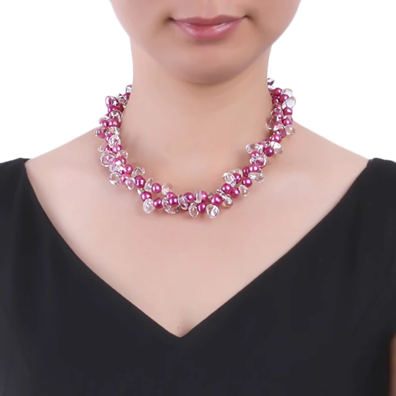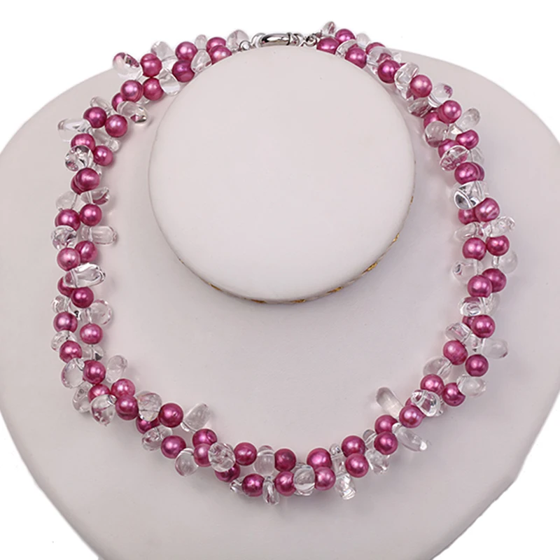 Turkish Jewelry Two-strand 9-10mm Purple Cultured Pearl and Side-drilled Rock Crystal Necklace Choker 18.5