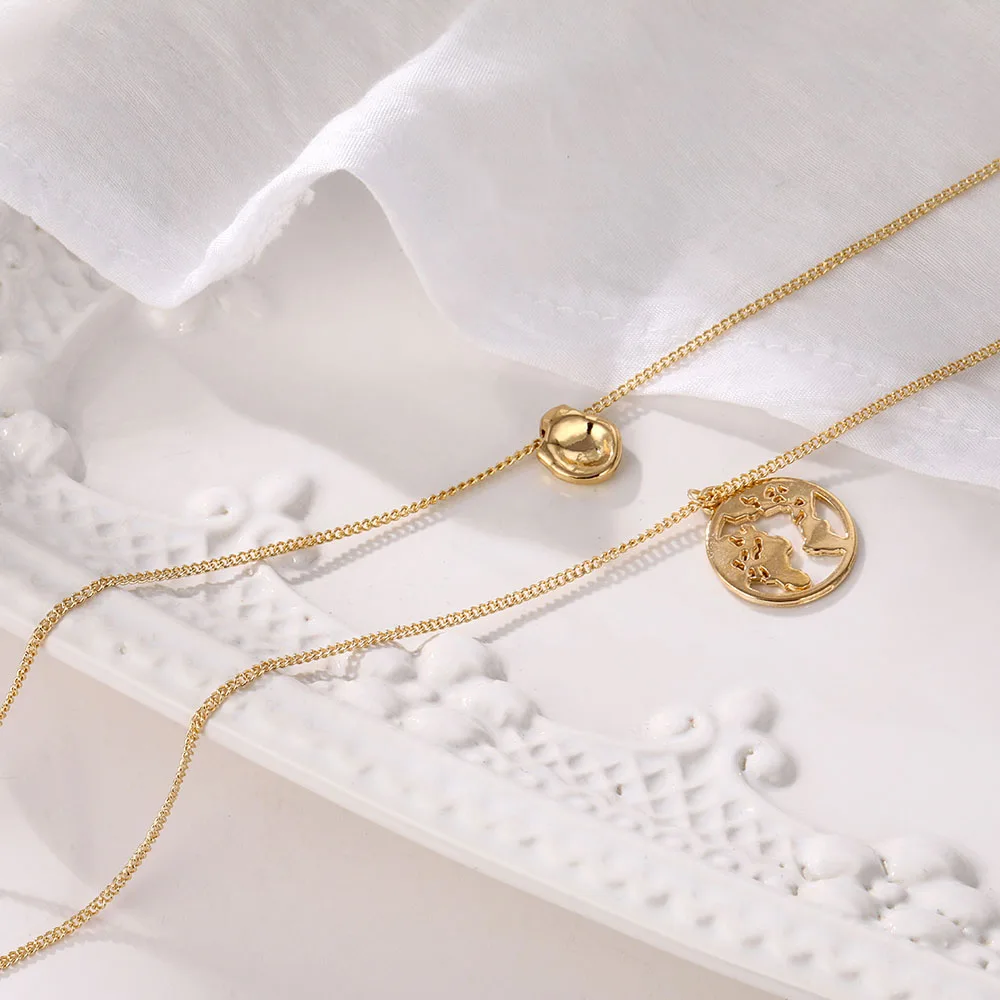 KINFOLK Simple Hollow Globe Earth World Necklace Set Geometric World Map Pendant Necklace Women 2022 Wanderlust Jewelry