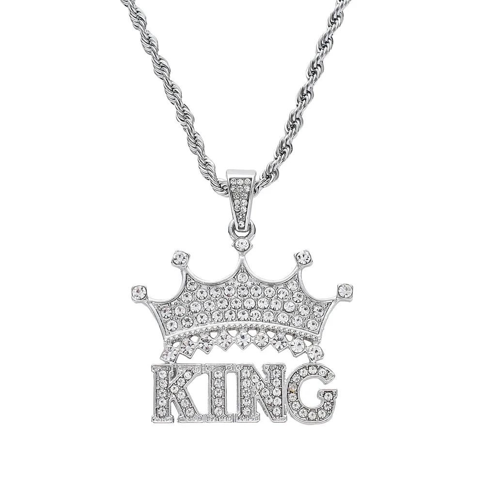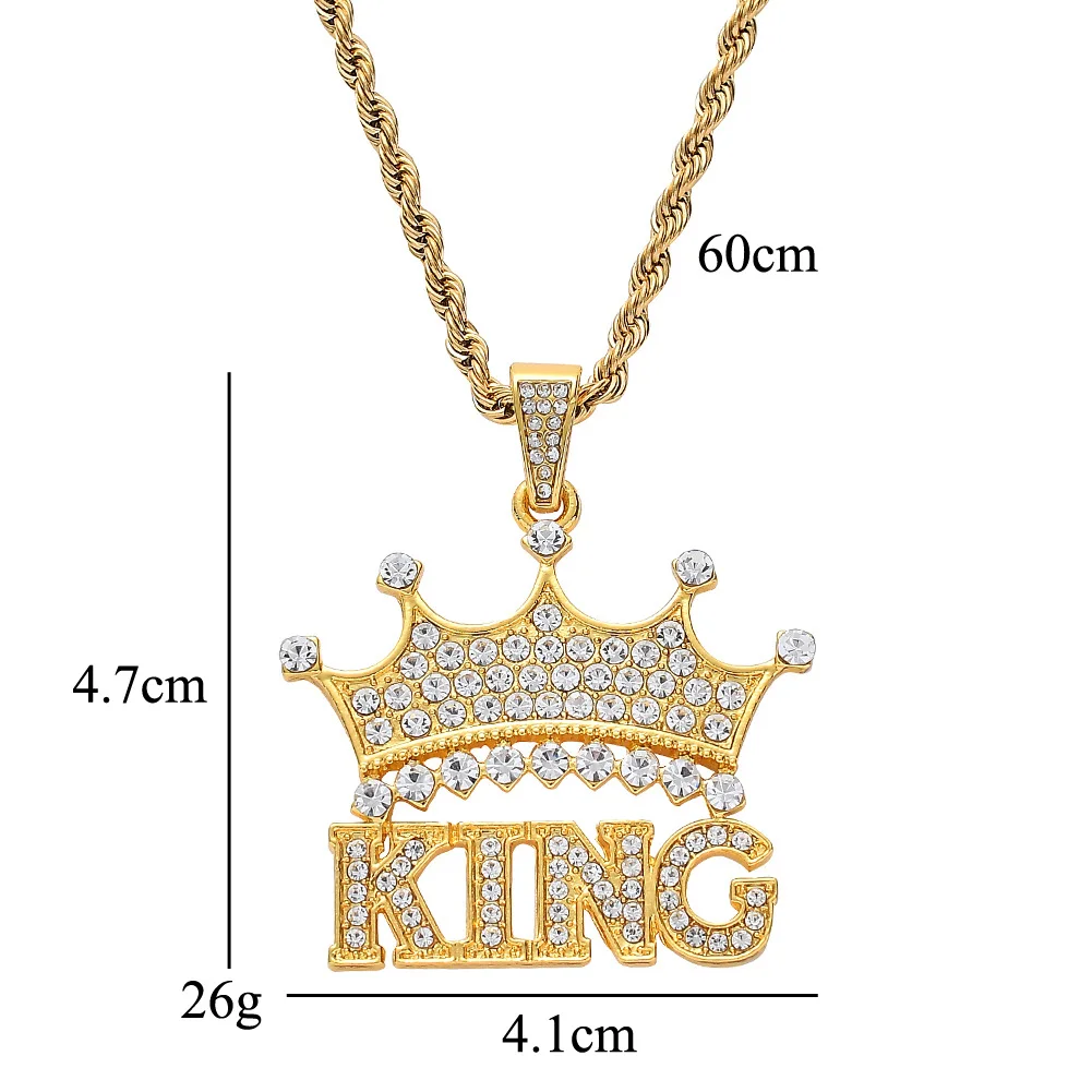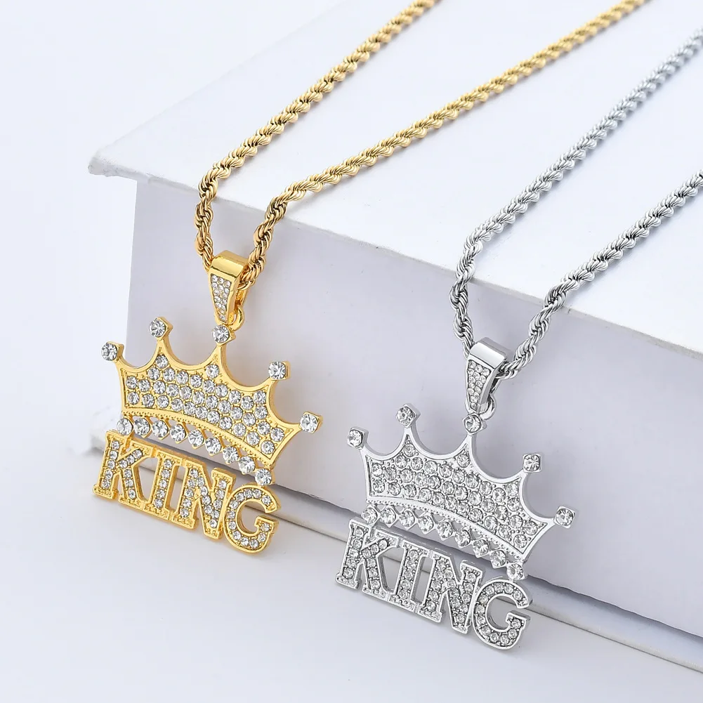 KING Crown Pendant Necklace for Men Punk Letter Necklace for Women Gold Stainless Steel Twist Chain Couple Hip Hop Jewelry Gifts