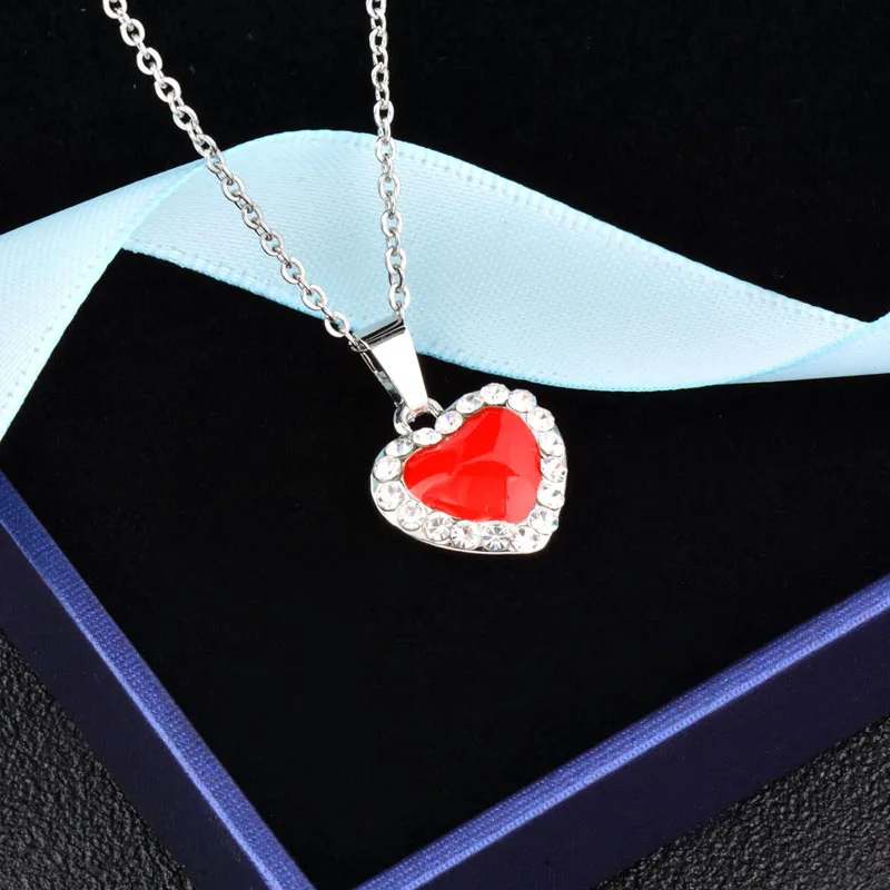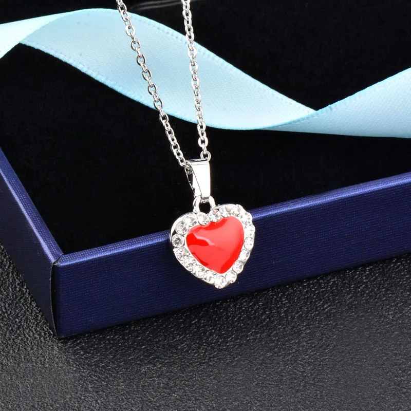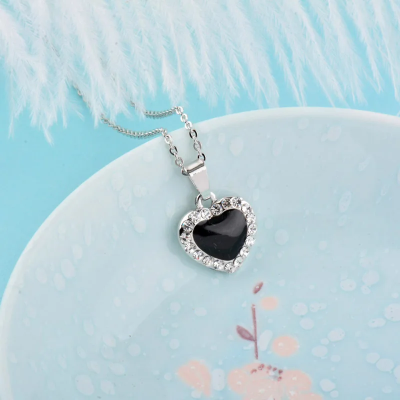 KIOOZOL Classic Solid Rhinestone Pendant Red Black Heart Shaped Choker Necklace For Women Selling Jewelry 397 KO1