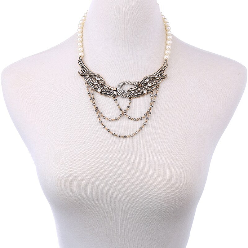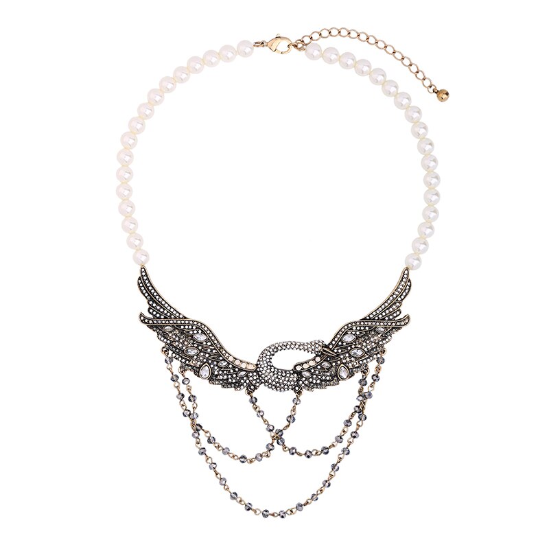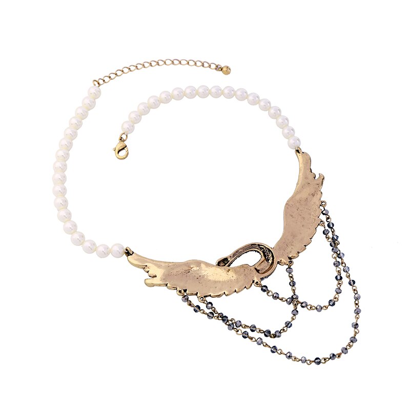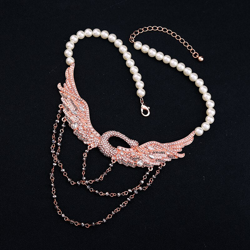 Production name : : Luxury Simulated Pearls Beads Chain Crystal Swan Choker Necklac