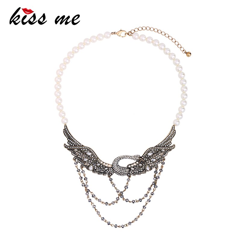 KISS ME Simulated Pearls Beads Chain Crystal Swan Choker Necklace Women Brand Statement Necklace Jewelry