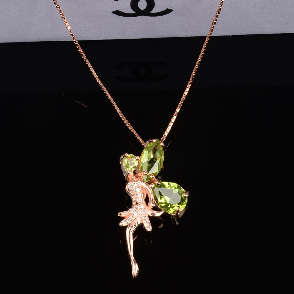 boutique jewelry,925 sterling silver inlaid natural peridot pendant pendant necklace female angel