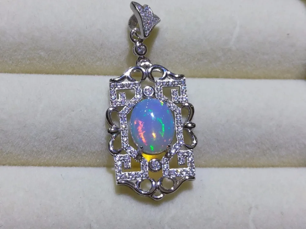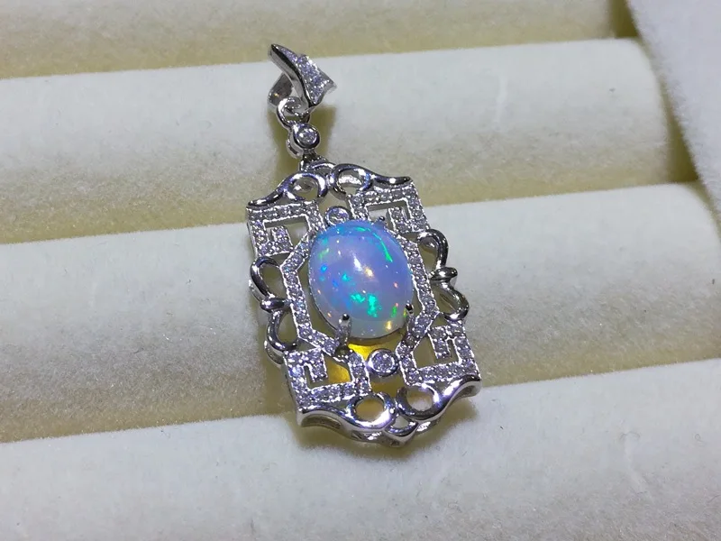 boutique jewelry,Pure natural fire Opal female models pendants beauty da 925 sterling silver inlaid send chain