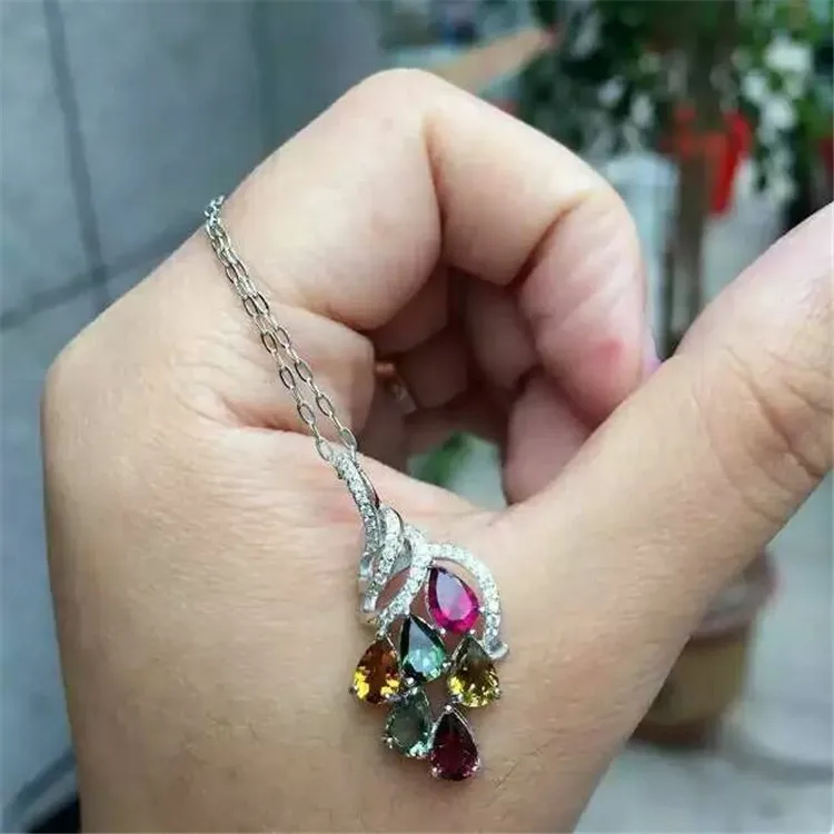 boutique jewelry, Women's natural tourmaline necklace pendants, jewelry , S925 silver, pure silver