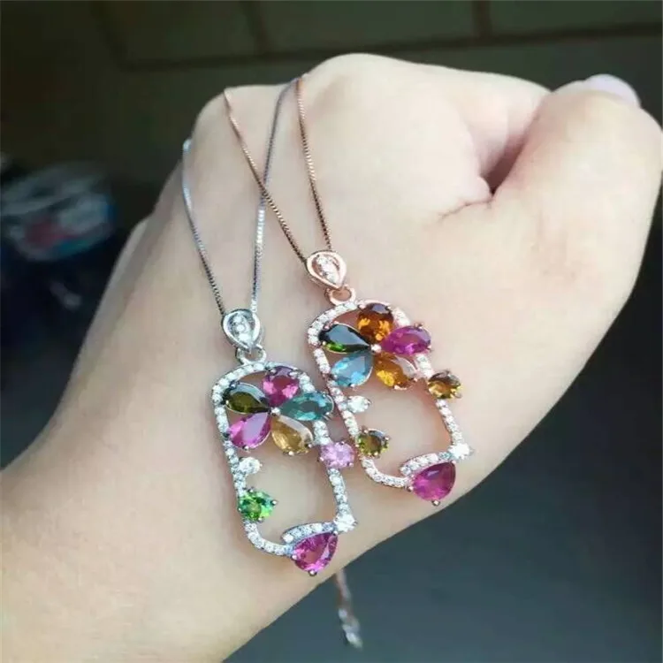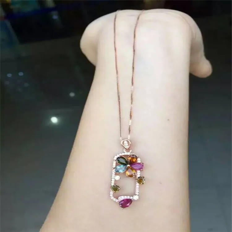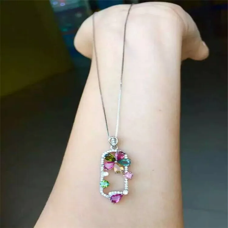 boutique jewelry, Women's necklace, natural tourmaline, pendants, jewelry , S925 silver, pure silver