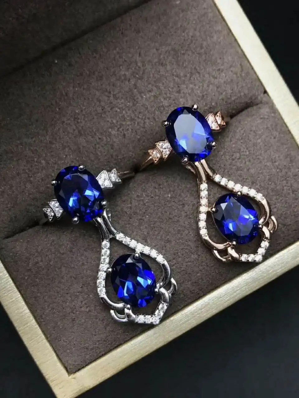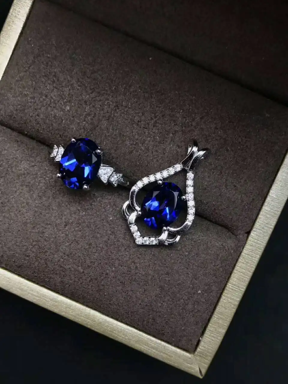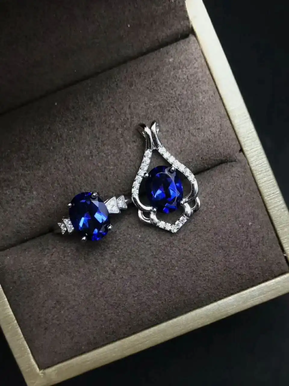 Fine jewelry 925 sterling silver inlaid natural Tanzanite pendant ring shinv color toto Bo Necklace Set