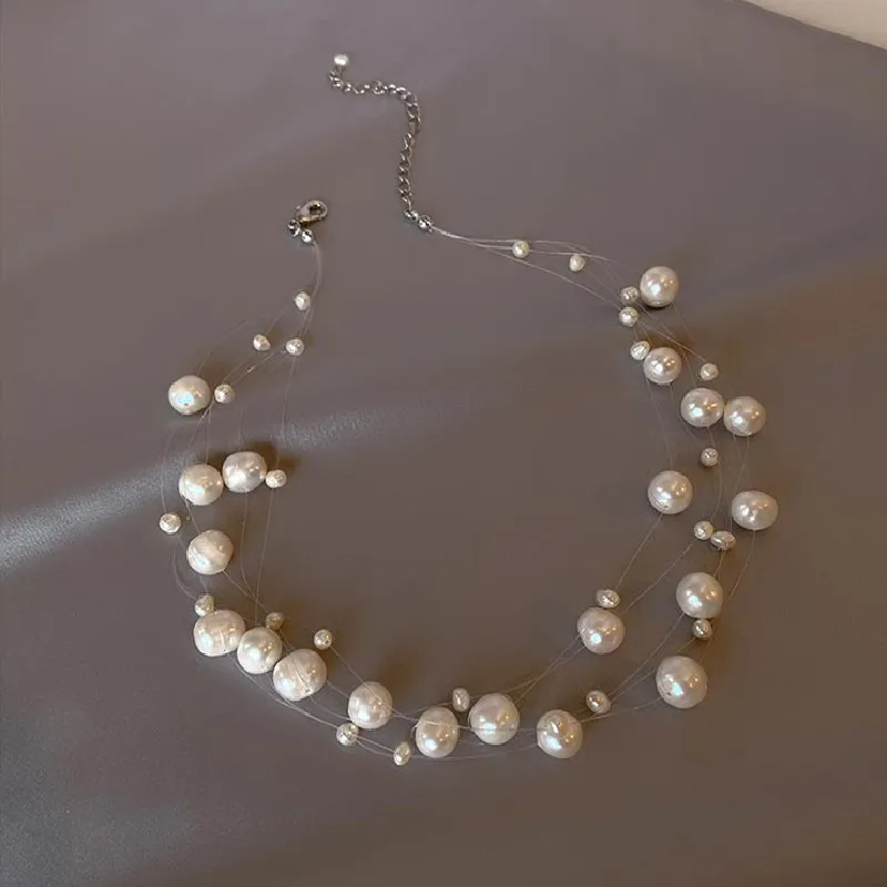 Korea Design Jewelry Natural Freshwater Pearl Hand Winding Necklace Elegant Women Party Accessories