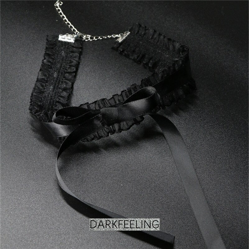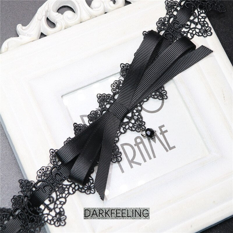 Korean Bowknot Dark Girl Black Lace Choker Necklace 2021 Harajuku Punk Gothic Loli Cute Collar Necklace Geometric Female Jewelry