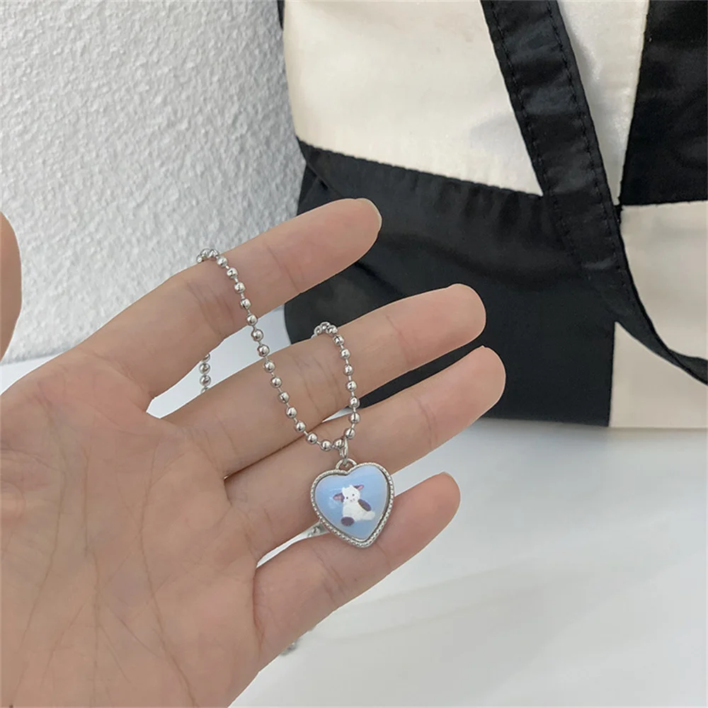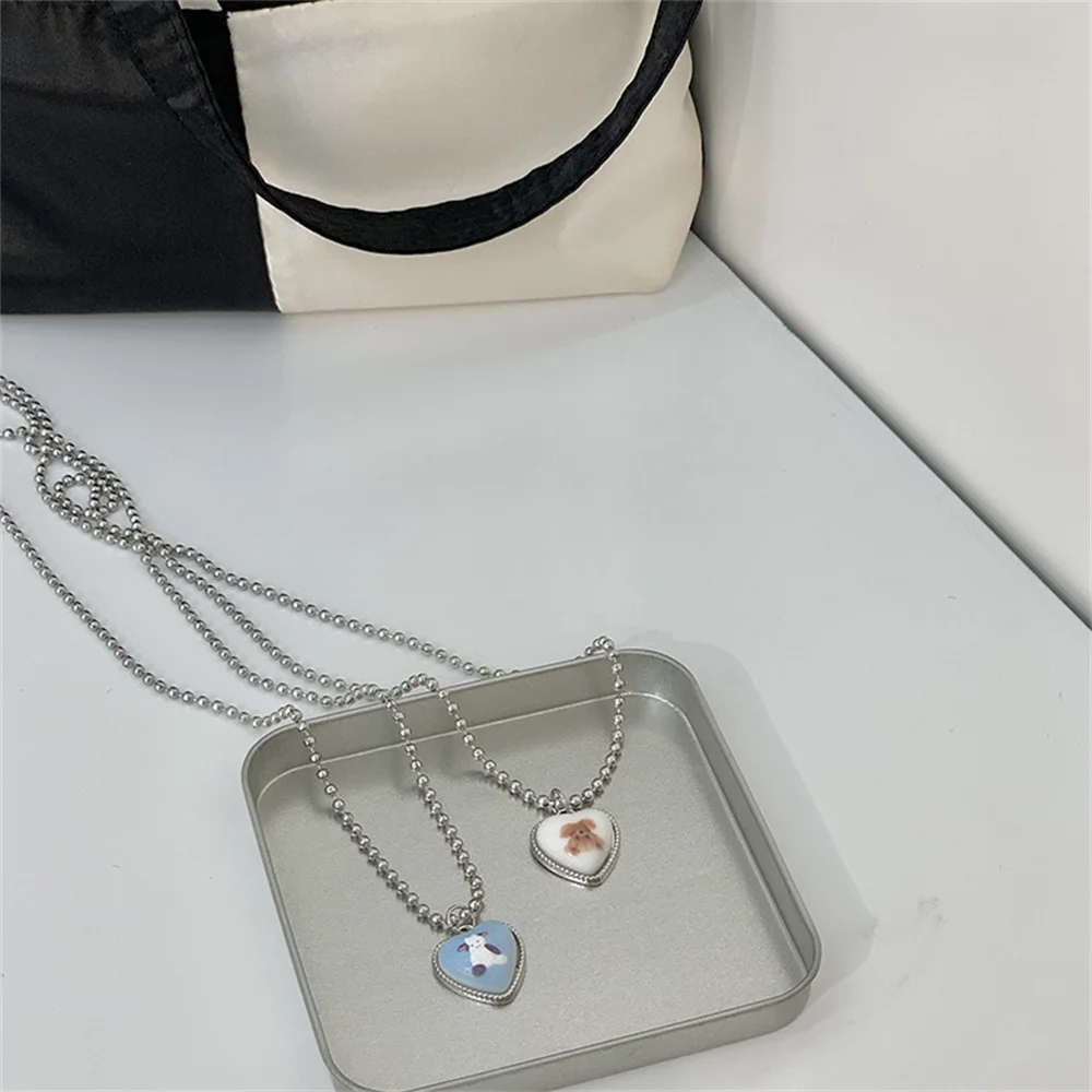 Korean Cute Bear Cows Sweater Heart Pendant Neck Beaded Chain Necklace Kawaii Collar For Women Girls Bff Couple Jewelry