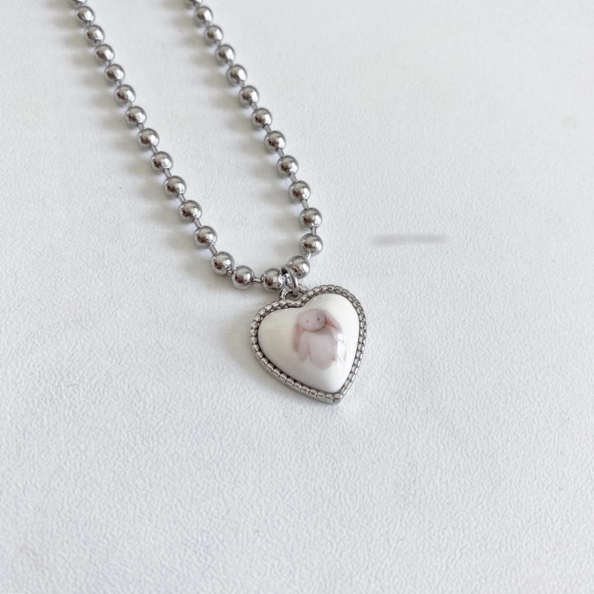 Korean Cute Peach Heart Shape Cow Rabbit Pendant Necklaces for Women Girlfriend Gift Jewelry Lovely Beads Chains Y2K