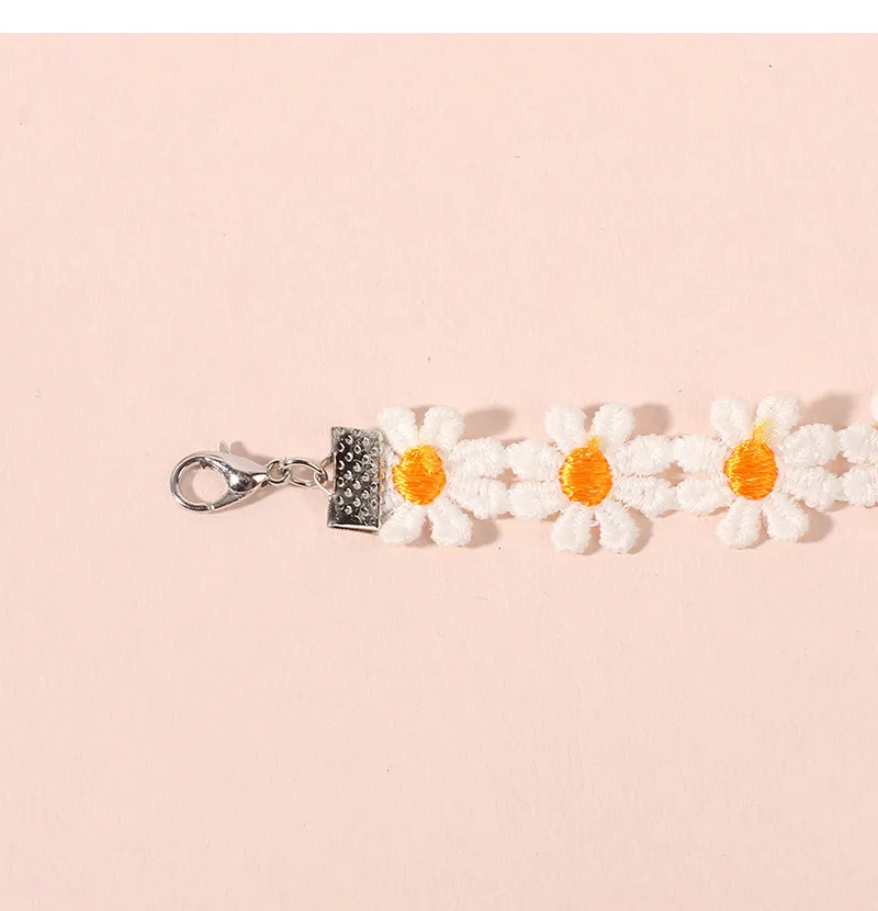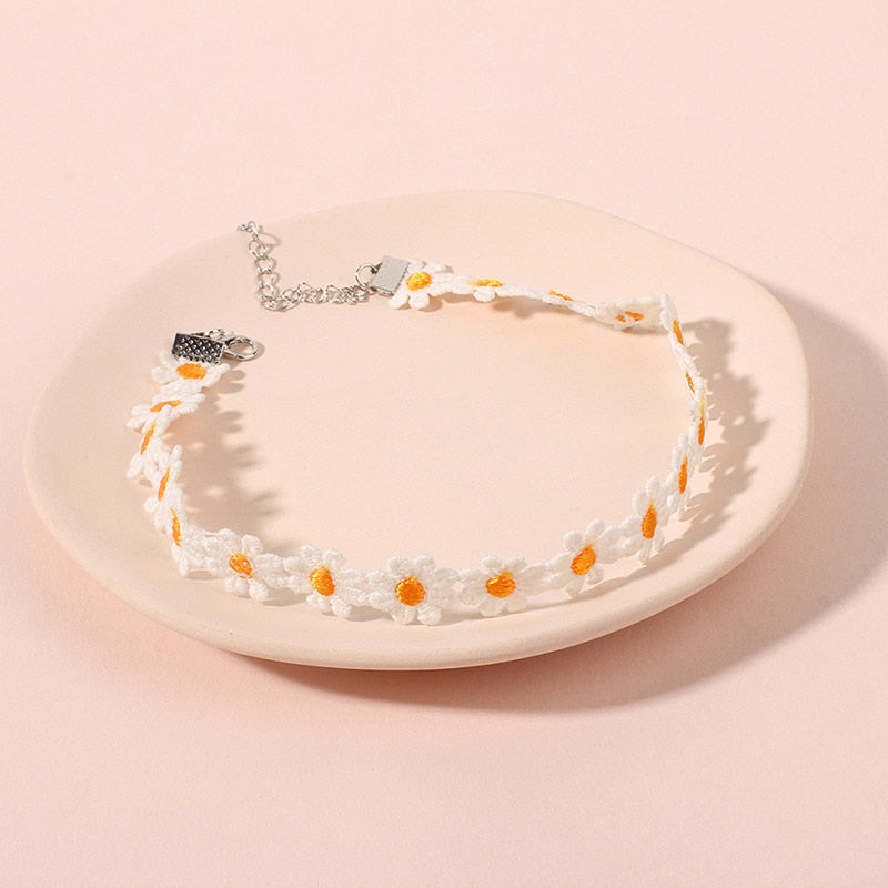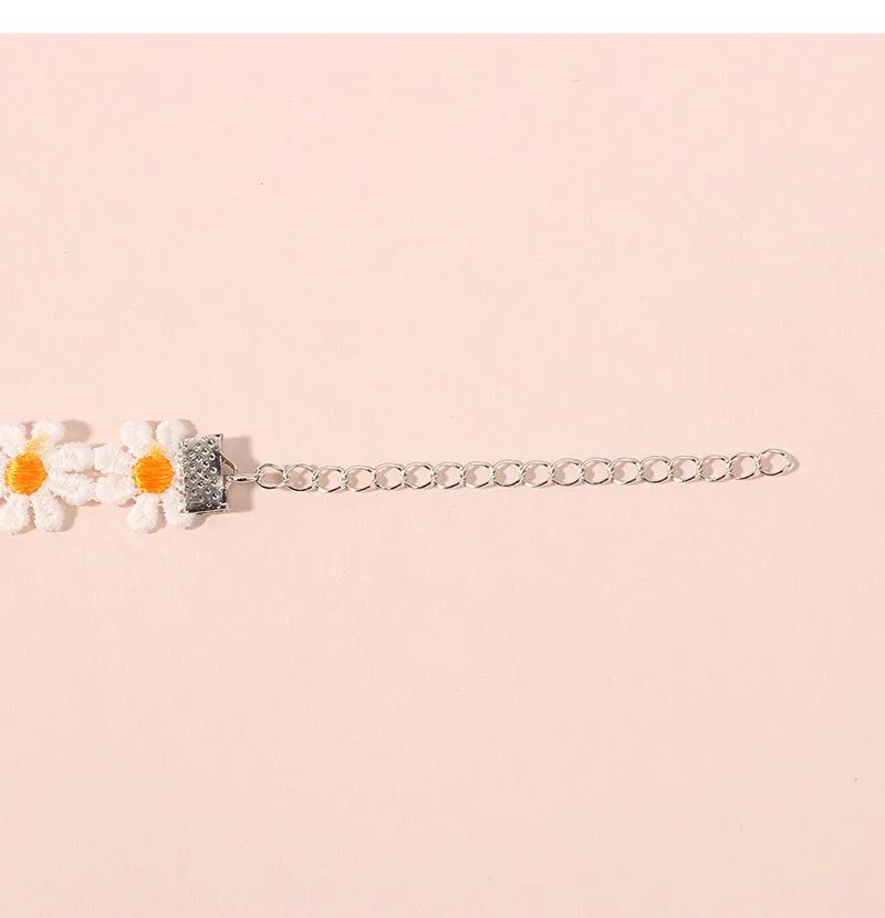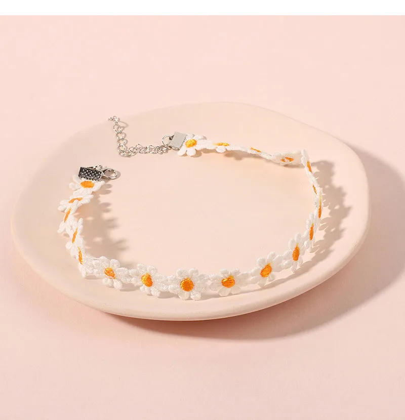Korean Daisy Choker Necklace Sweet Lace Flower Collar Simple Necklaces for Women Girls Summer Temperament Jewelry Gifts