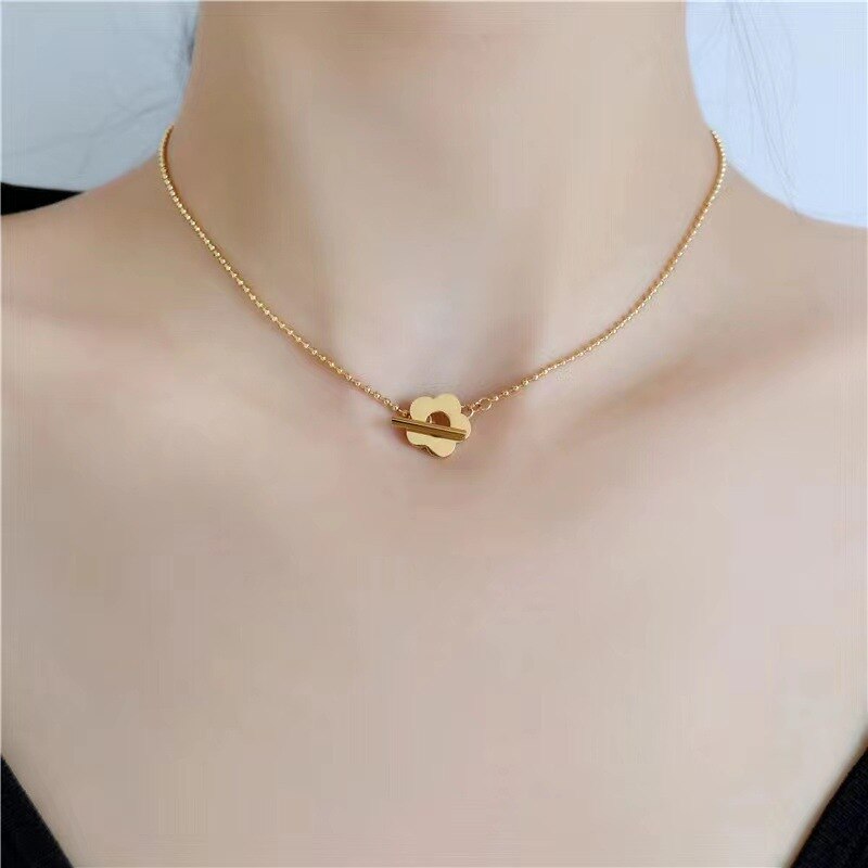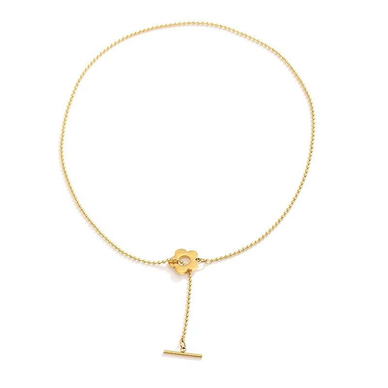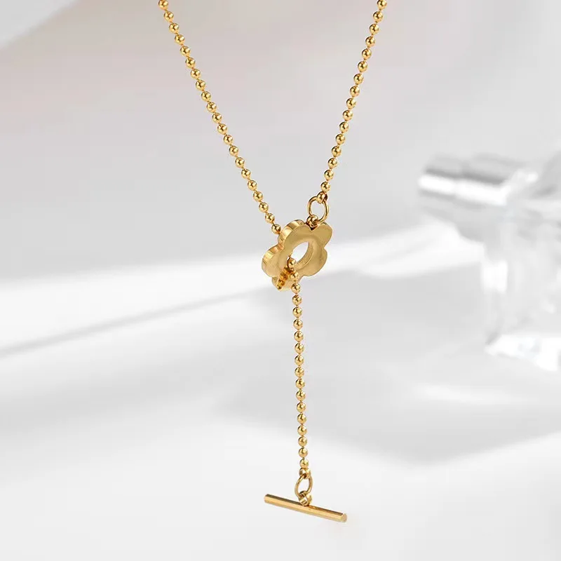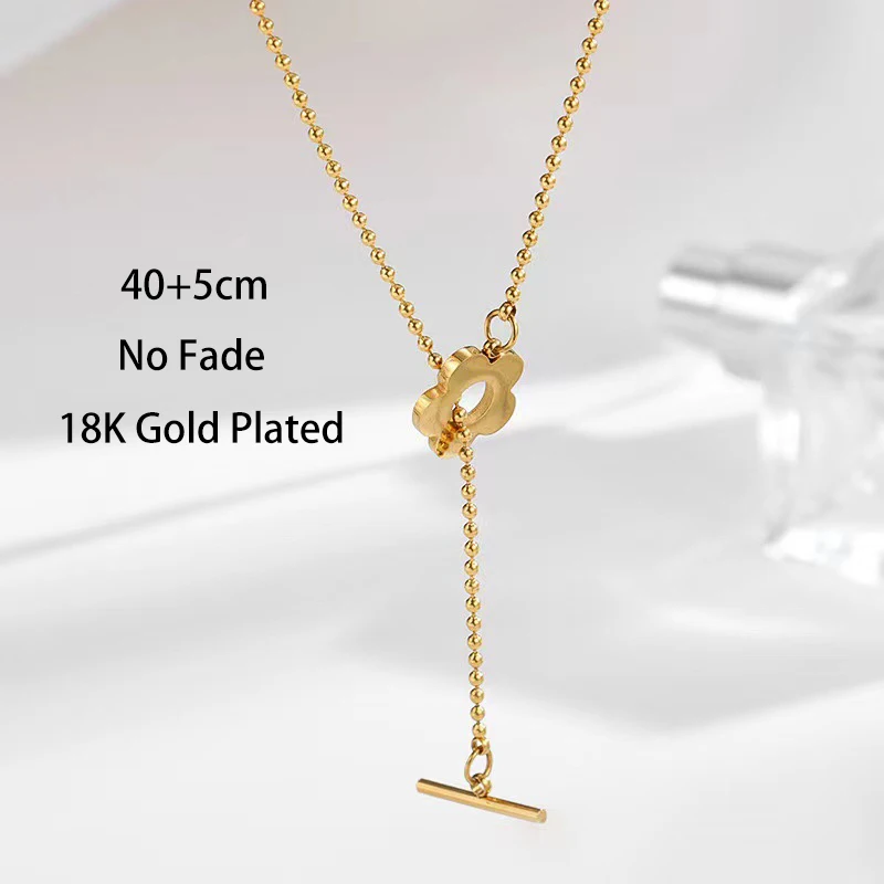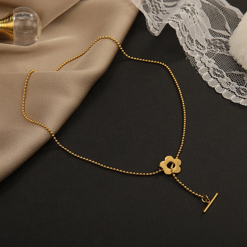 Korean Exquisite Beads Chain Flower Pendant Stainless Steel Clavicle Necklaces Female Daily Party Jewelry Gift