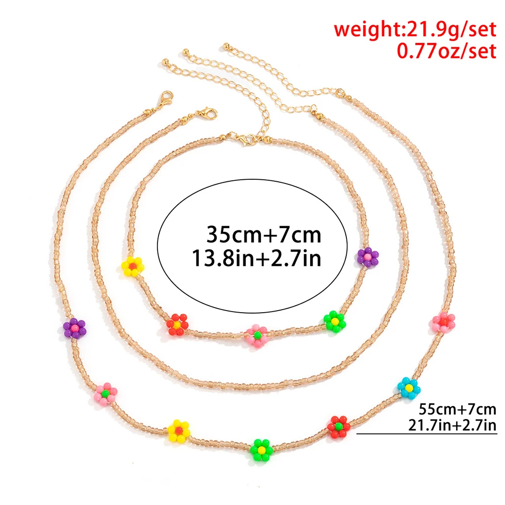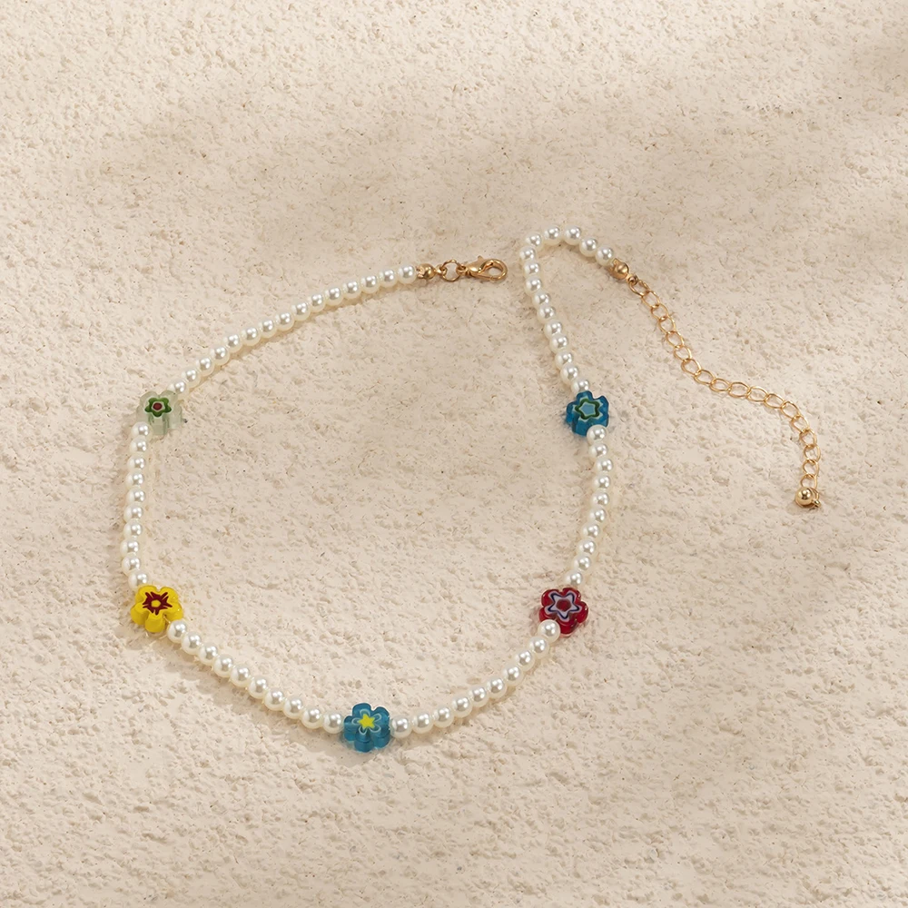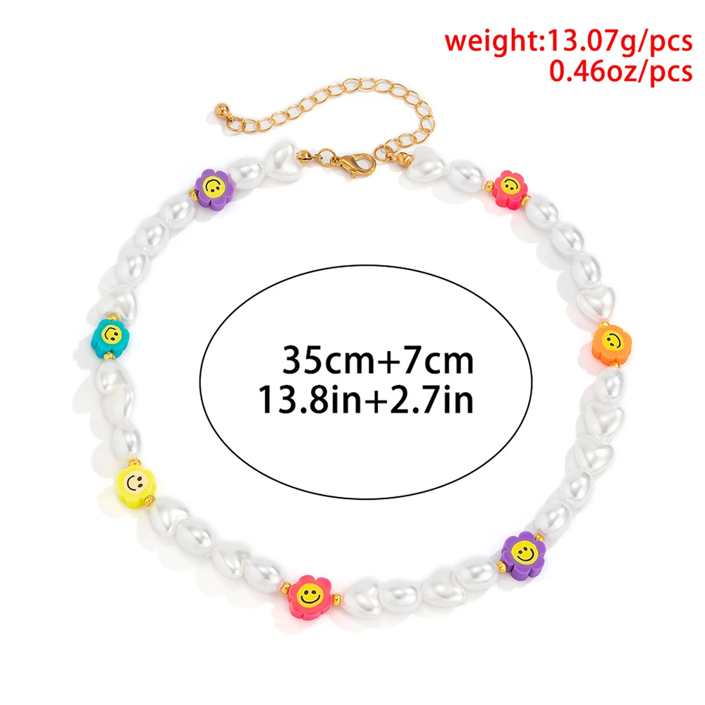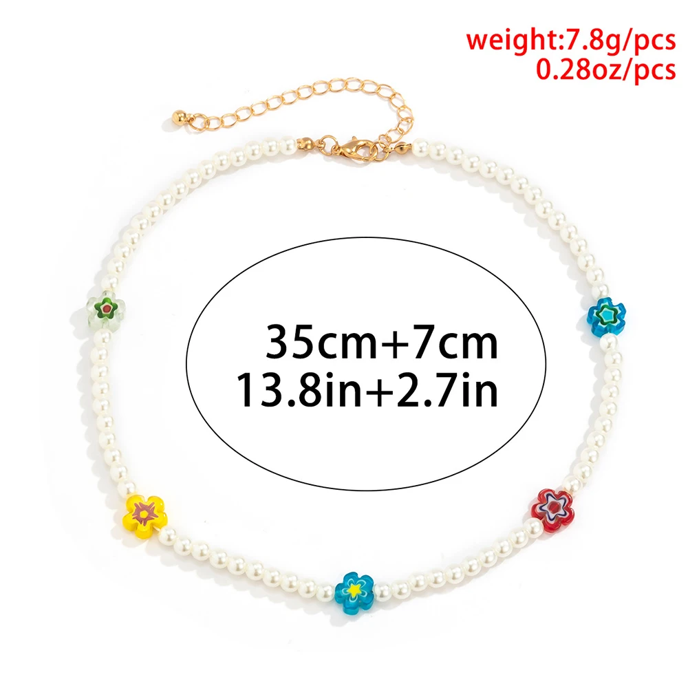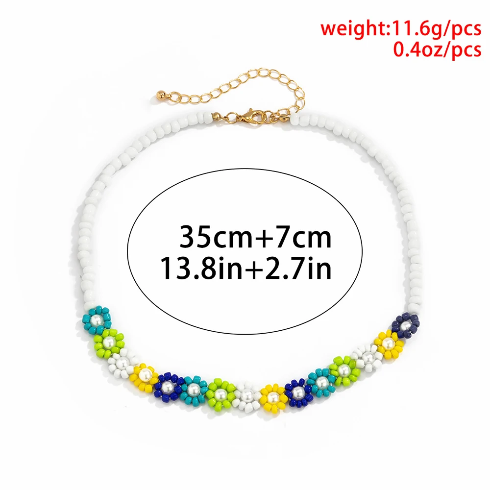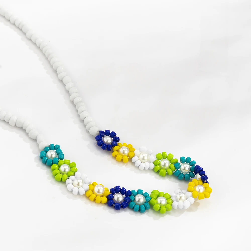 Korean Layered Ethnic Imitation Pearl Letters Daisy Flower Choker Necklace For Women Sweet Girls Beads Necklace Bohemian Jewelry