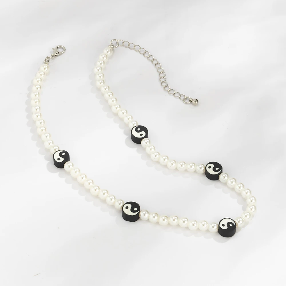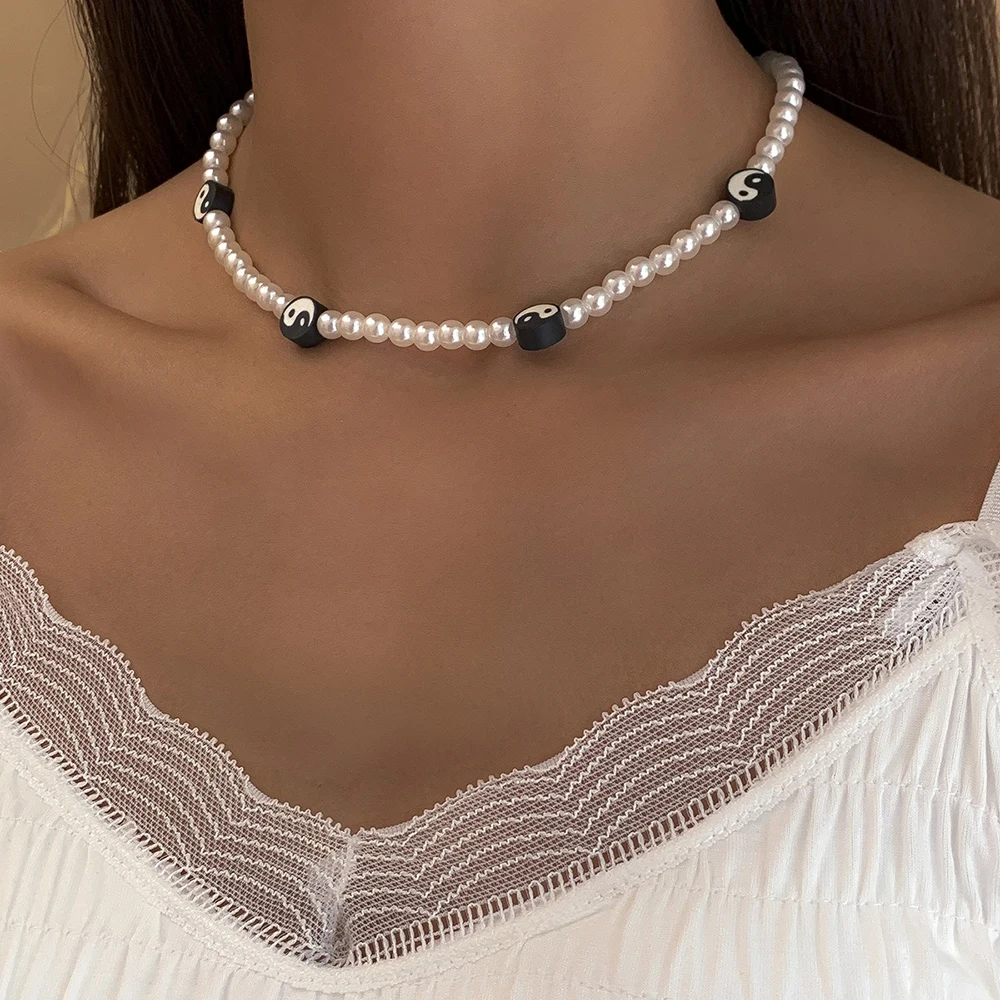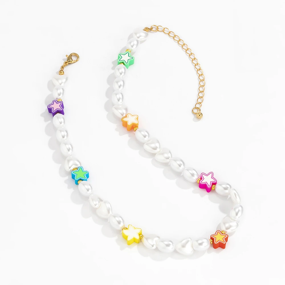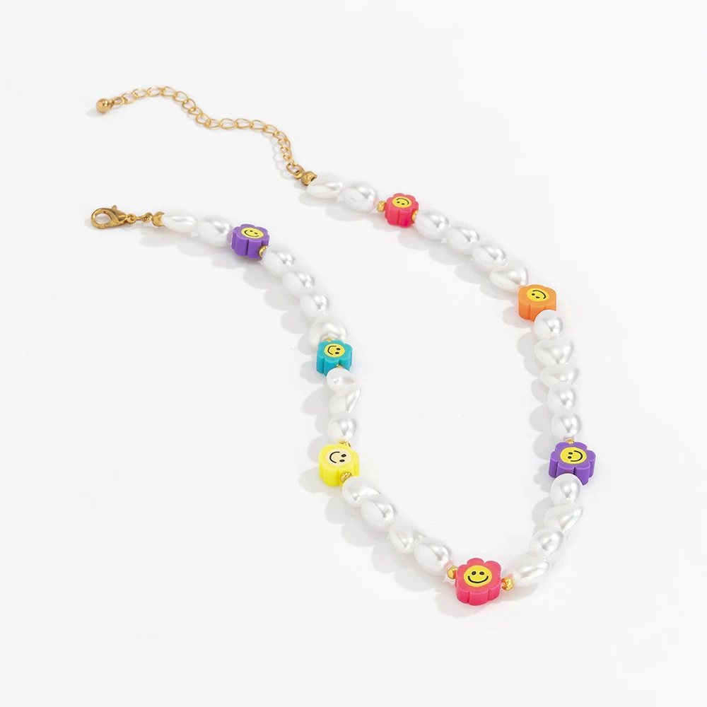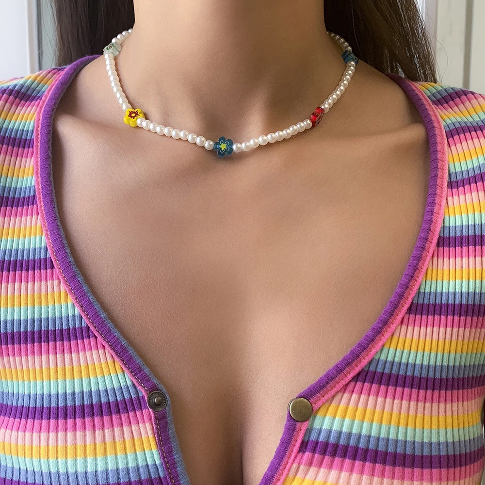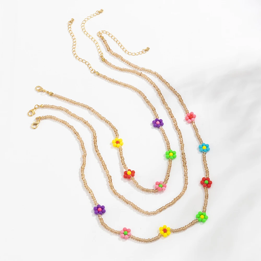 Korean Layered Ethnic Imitation Pearl Letters Daisy Flower Choker Necklace For Women Sweet Girls Beads Necklace Bohemian Jewelry