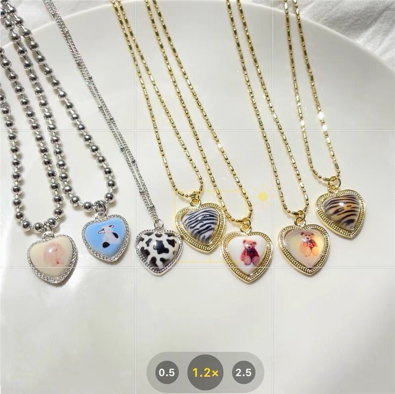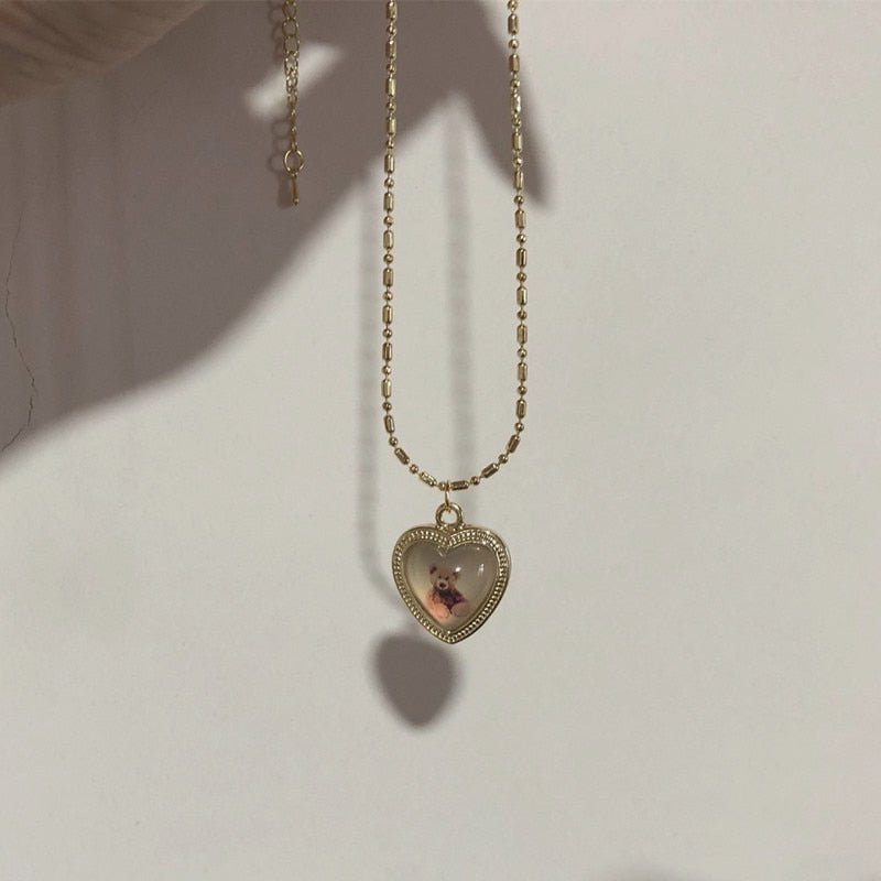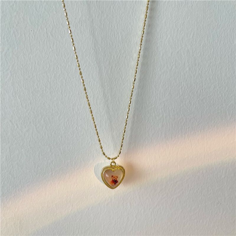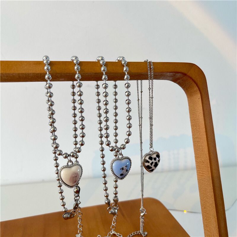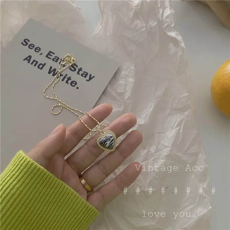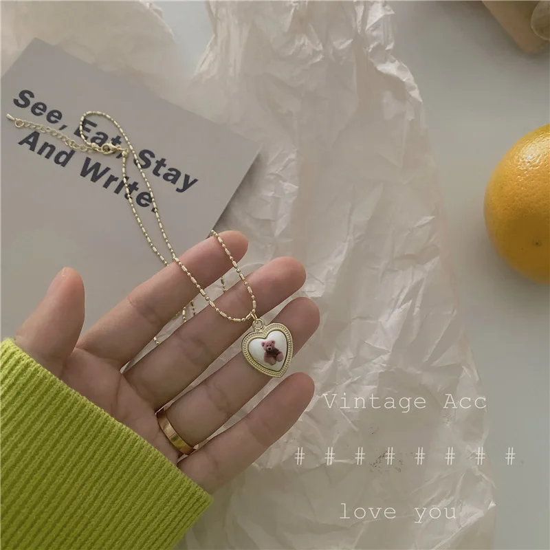 Korean Retro Geometric Love Bear Necklace Female Leopard Print Resin Chain Necklace Gifts for Women Girls Accessories
