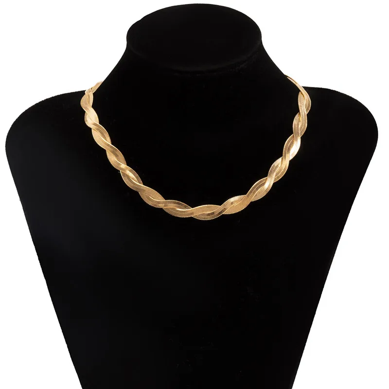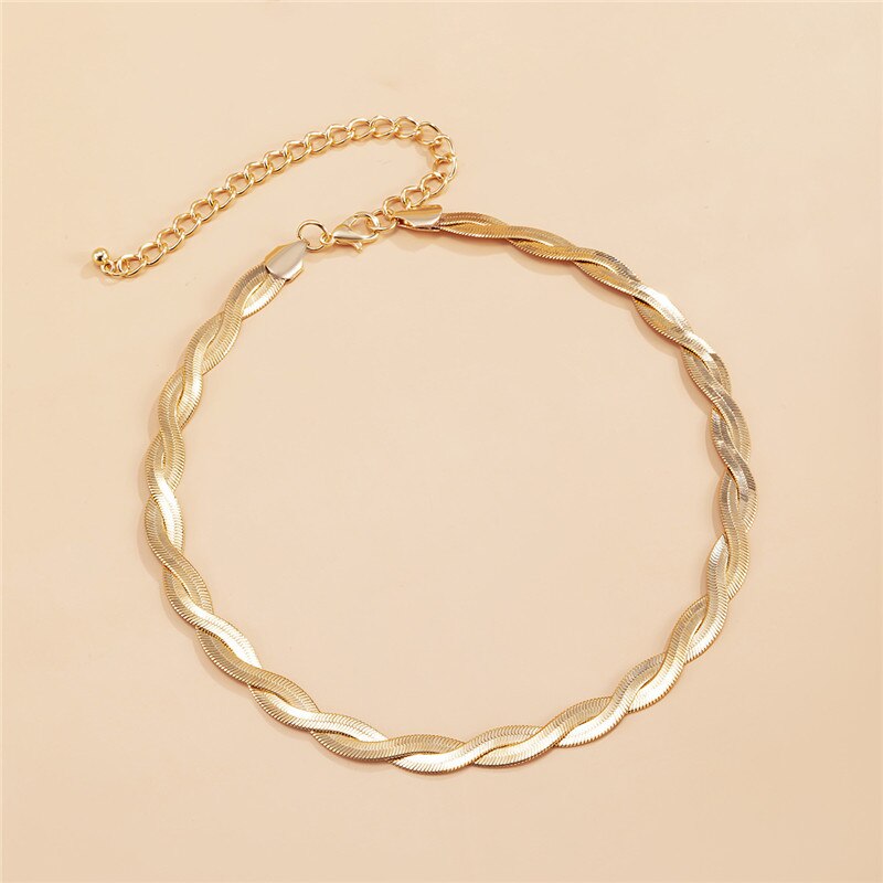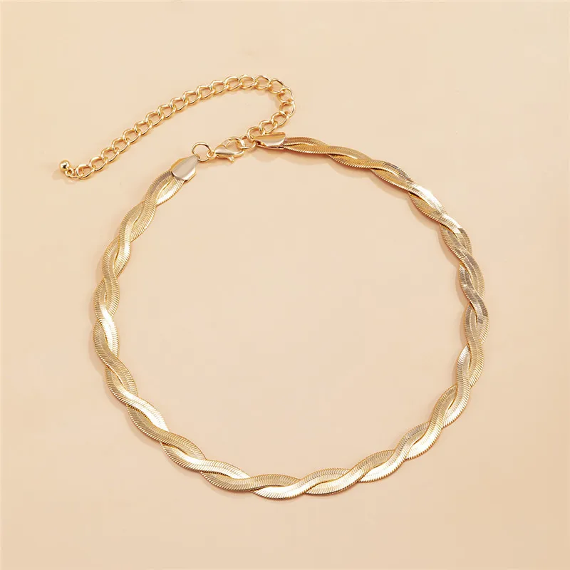 Korean Version Ins Style Single Layer Winding Snake Bone Necklace Of Women Simple Temperament Woven Metal Clavicle Chain Jewelry