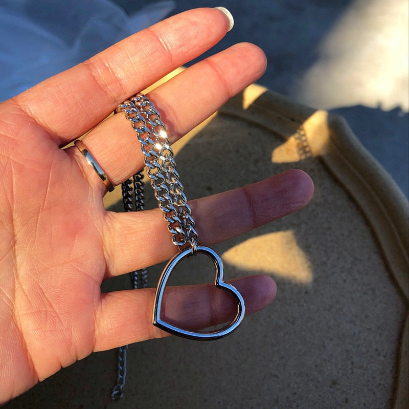 Kpop Stainless Steel Harajuku Heart Wing Choker Necklaces For Women collar Goth Statement Chain Necklace aesthetic jewellery