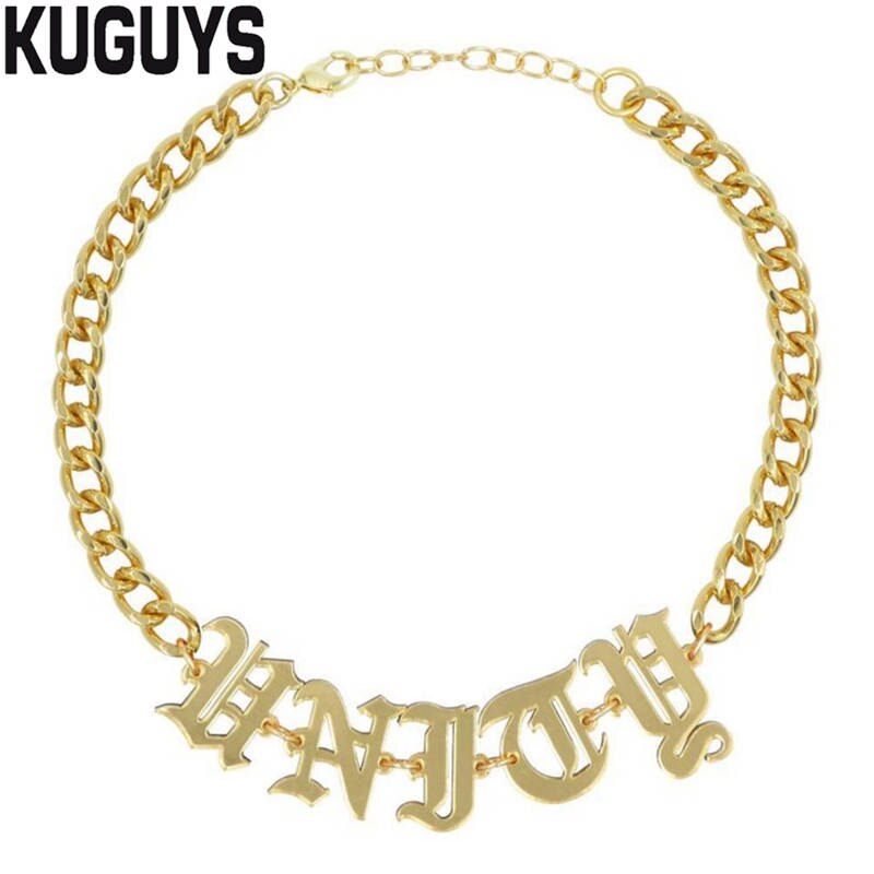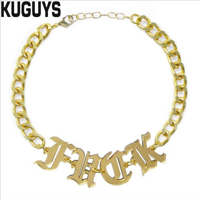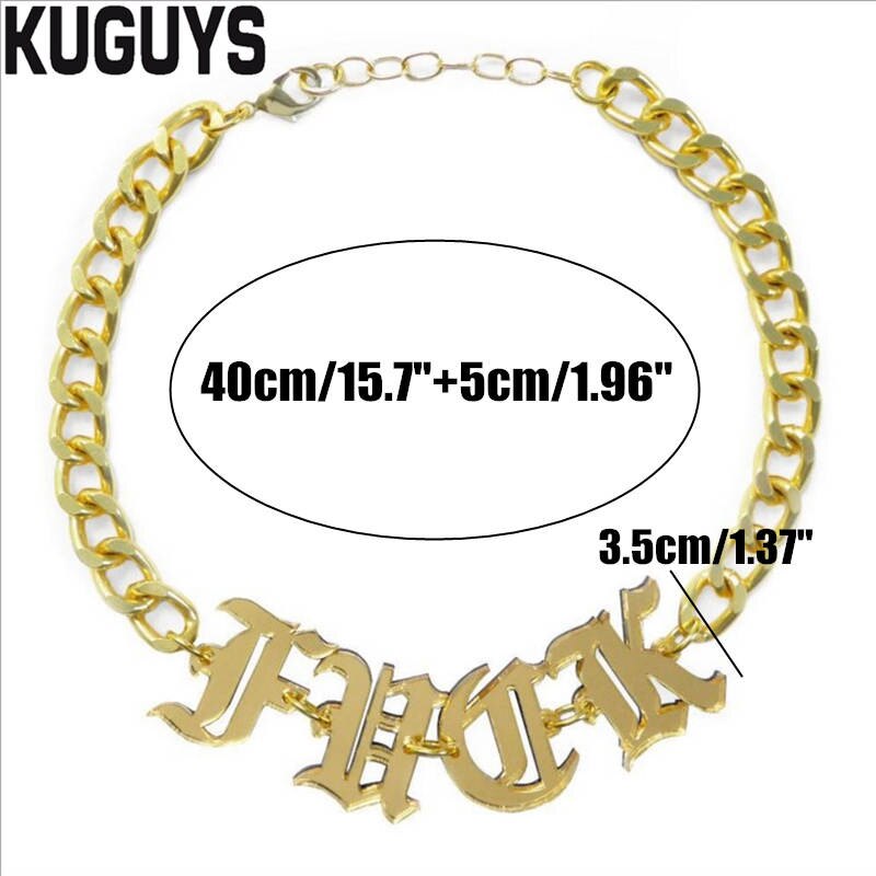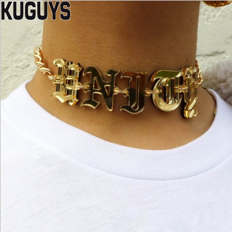 KUGUYS Acrylic Mirror Gold Letter Chokers Necklaces for Womens Trendy Jewelry Link Chain HipHop Punk Rock Girl Cool Accessories