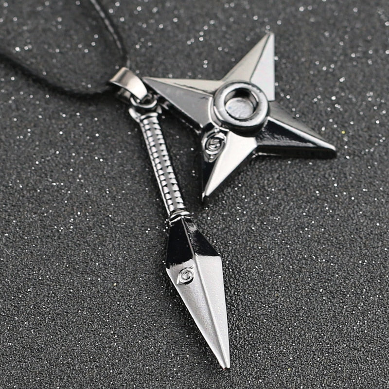 Kunai Dart Necklace Shuriken Weapon Konoha Logo Uzumaki Itachi Sasuke Pendant Leather Rope Ninja Cosplay Anime Jewelry