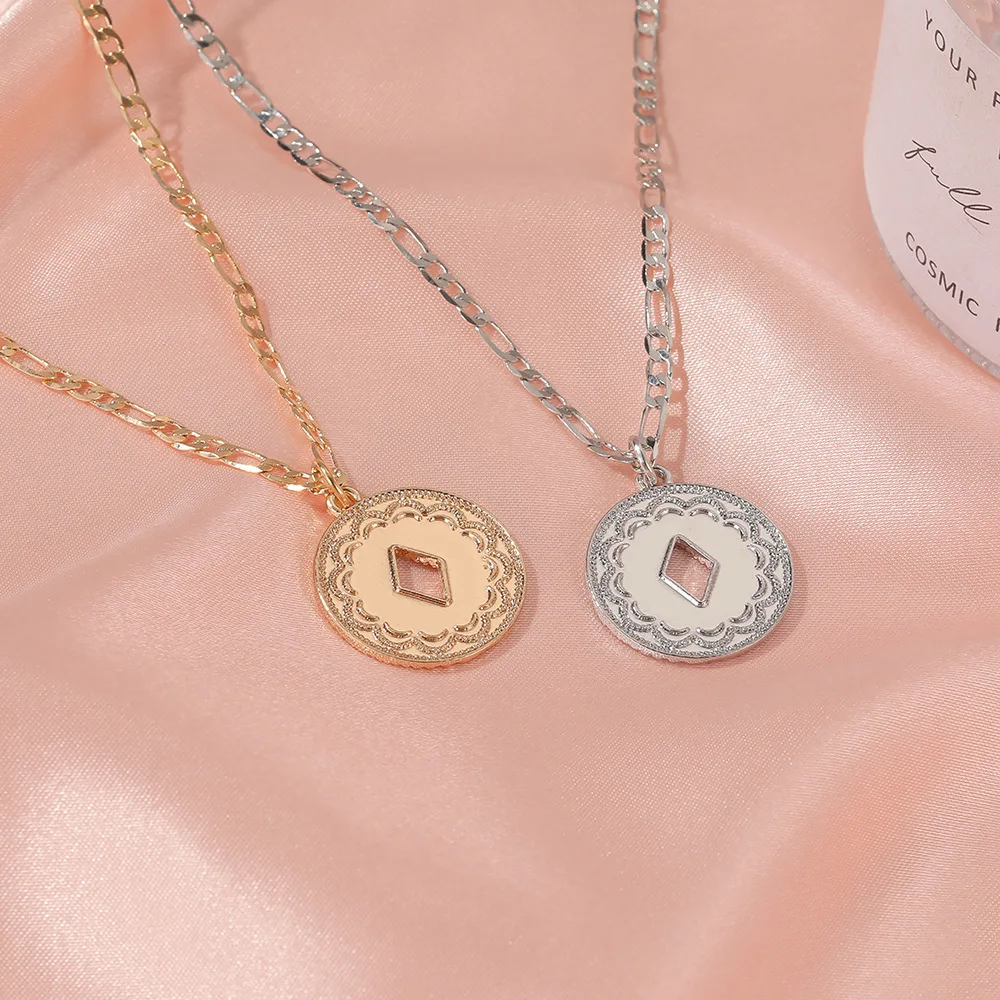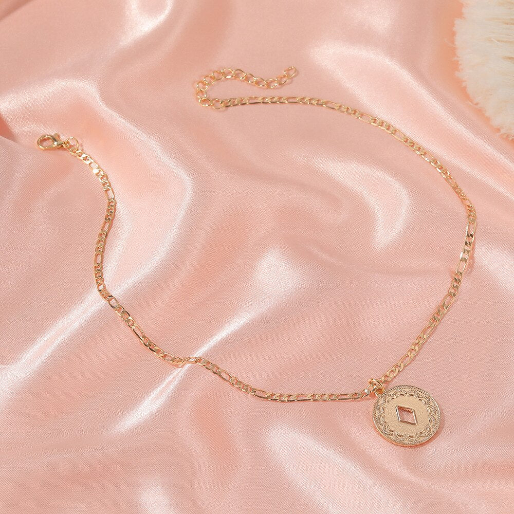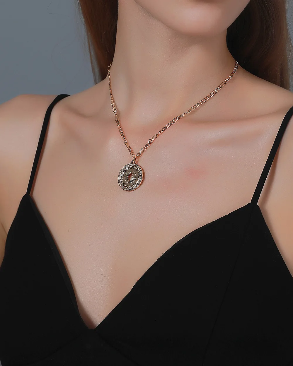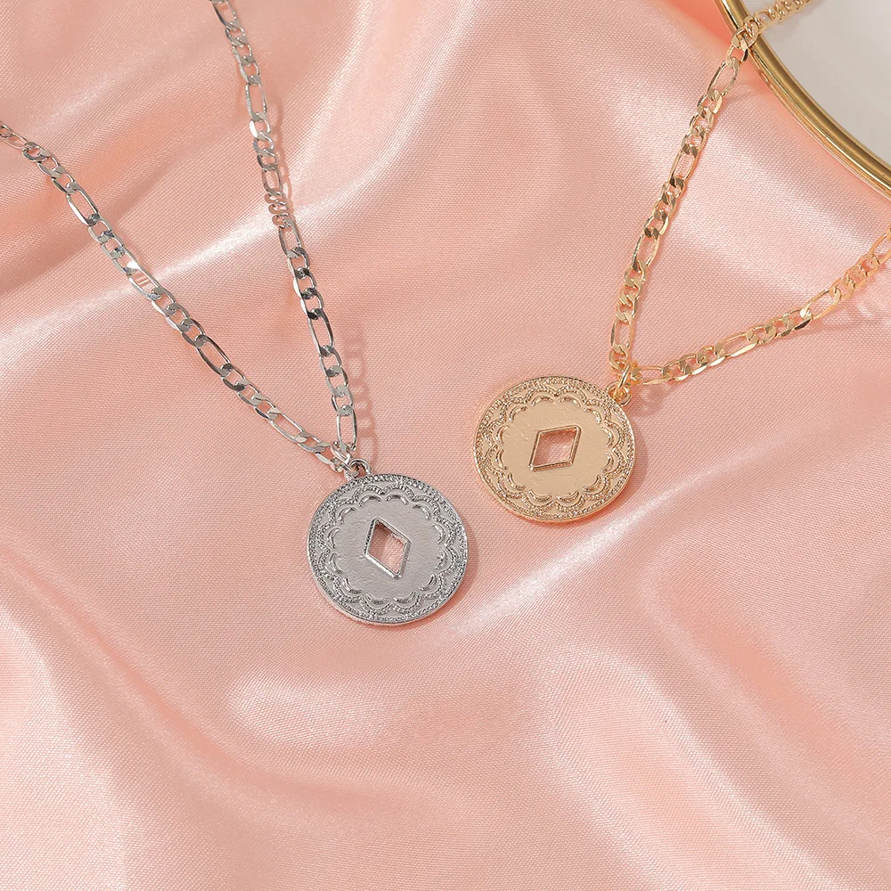 Kymyad Ethnic Choker Necklaces For Women Trendy Women's Neck Chain Hollow Circular Pendant Necklace Jewelry Collar Jewelry