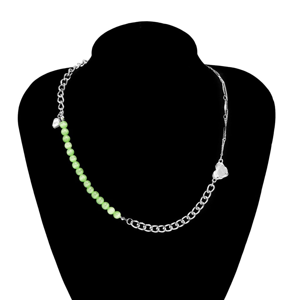 Lacteo 2021 Trendy Natural Stone Asymmetric Metal Chain Choker Necklace Hip Hop Heart Shape Pendant Necklace For Women