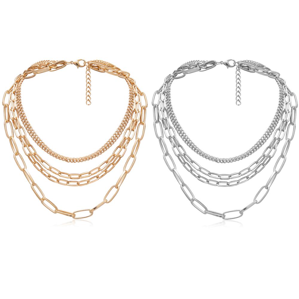 Lacteo Cuba Punk 4Multi Layer Choker Necklace for Women Metal Chunky Chain Charm Necklace Statement Female Jewelry Gift