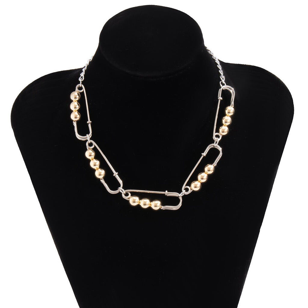 Lacteo Neo-Gothic Iron Material Pin Shape Clavicle Chain Choker Necklace 2021 Steampunk CCB Beads Necklace For Women Jewelry