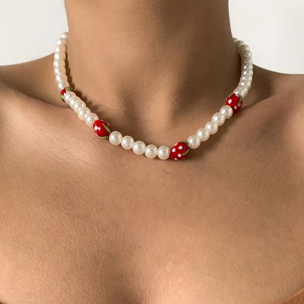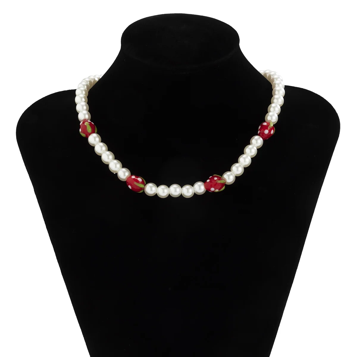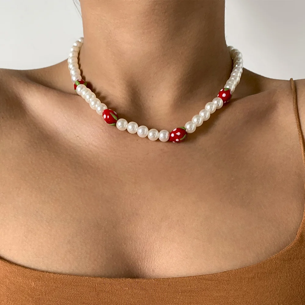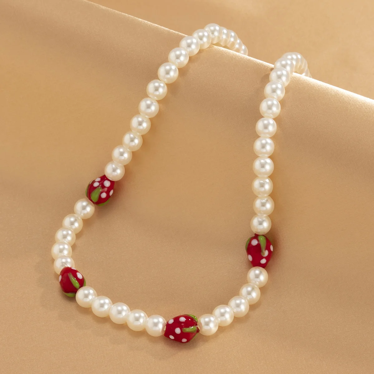 Lacteo Y2K Resin Fruit Asymmetric Imitation Pearls Choker Necklace 2021 Rainbow Colorful Chain Jewelry Charm Necklace