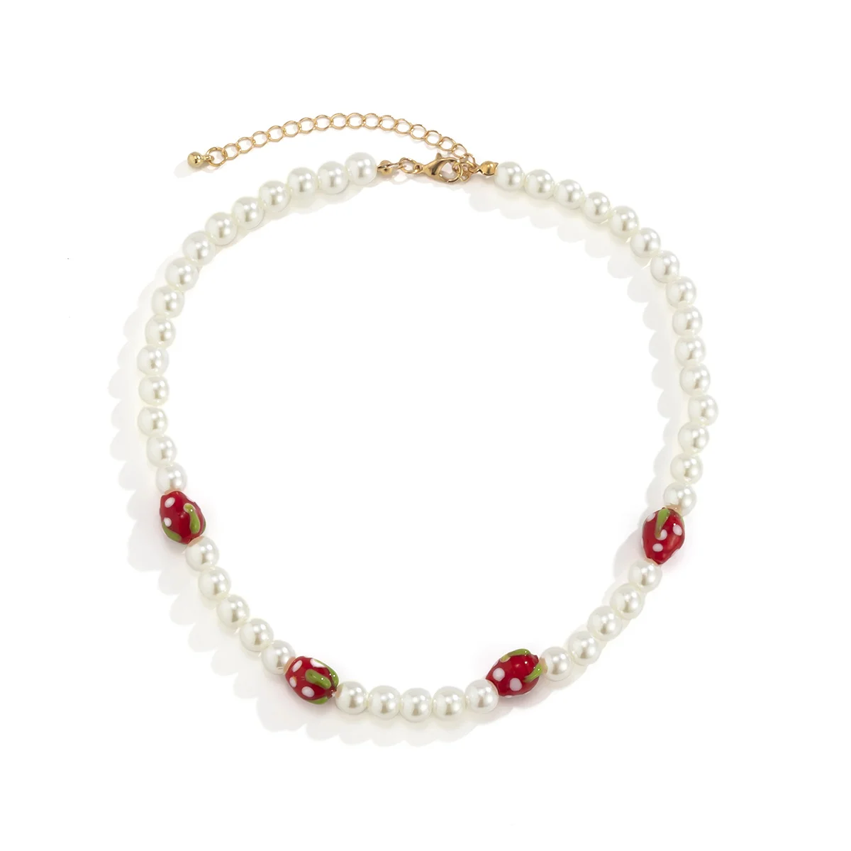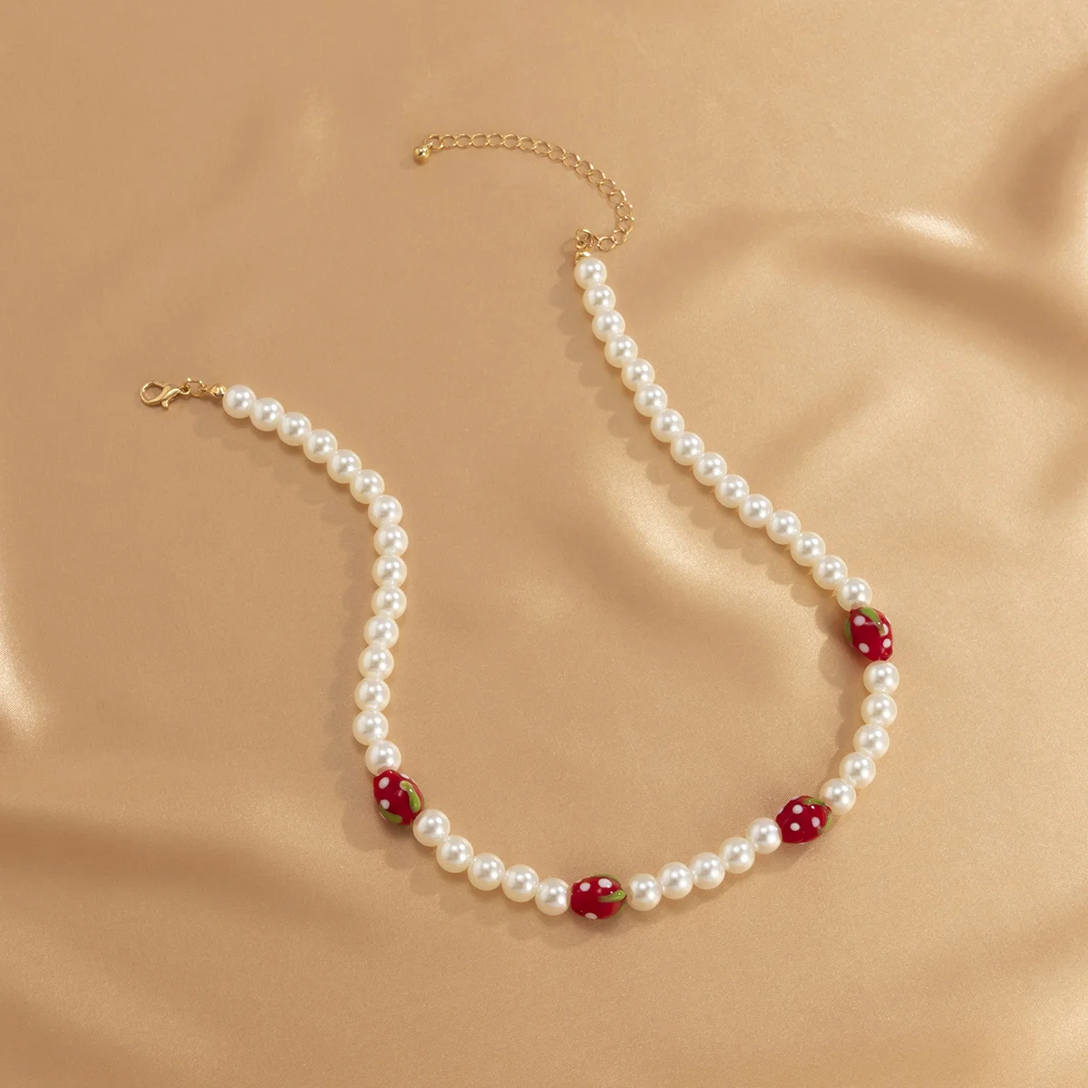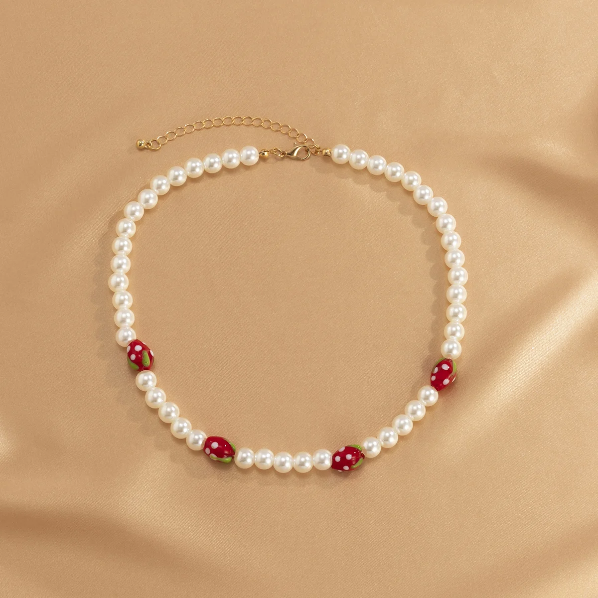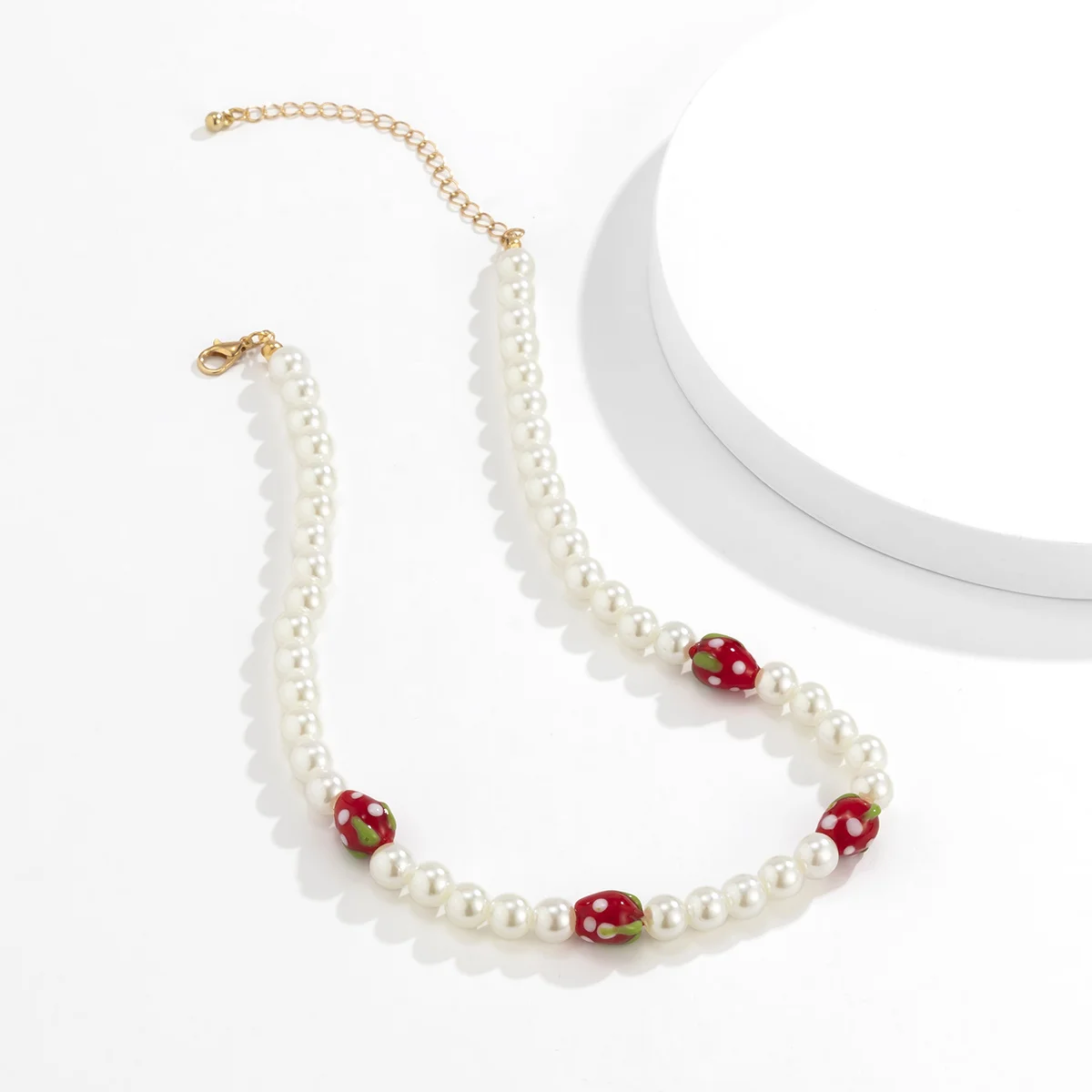 Lacteo Y2K Resin Fruit Asymmetric Imitation Pearls Choker Necklace 2021 Rainbow Colorful Chain Jewelry Charm Necklace