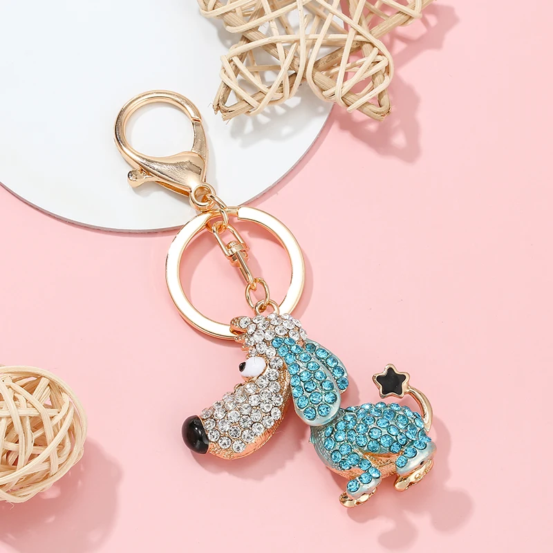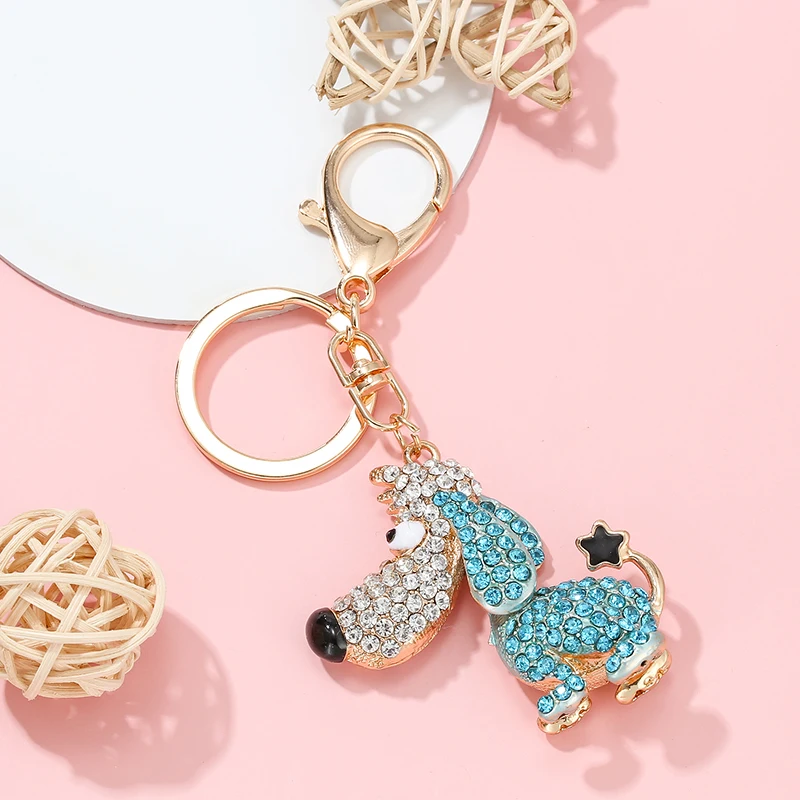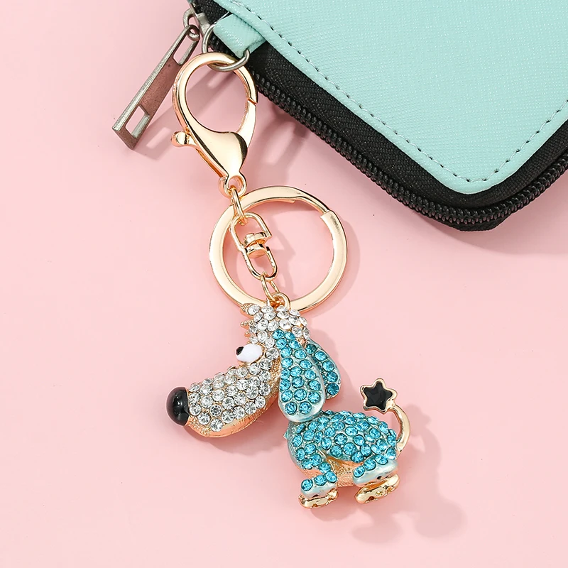 Ladies Handbag Poodle Key Ring Purse Bag Pendant Crystal Keyring For Women Keychain Charm Pendant Car key Pendant