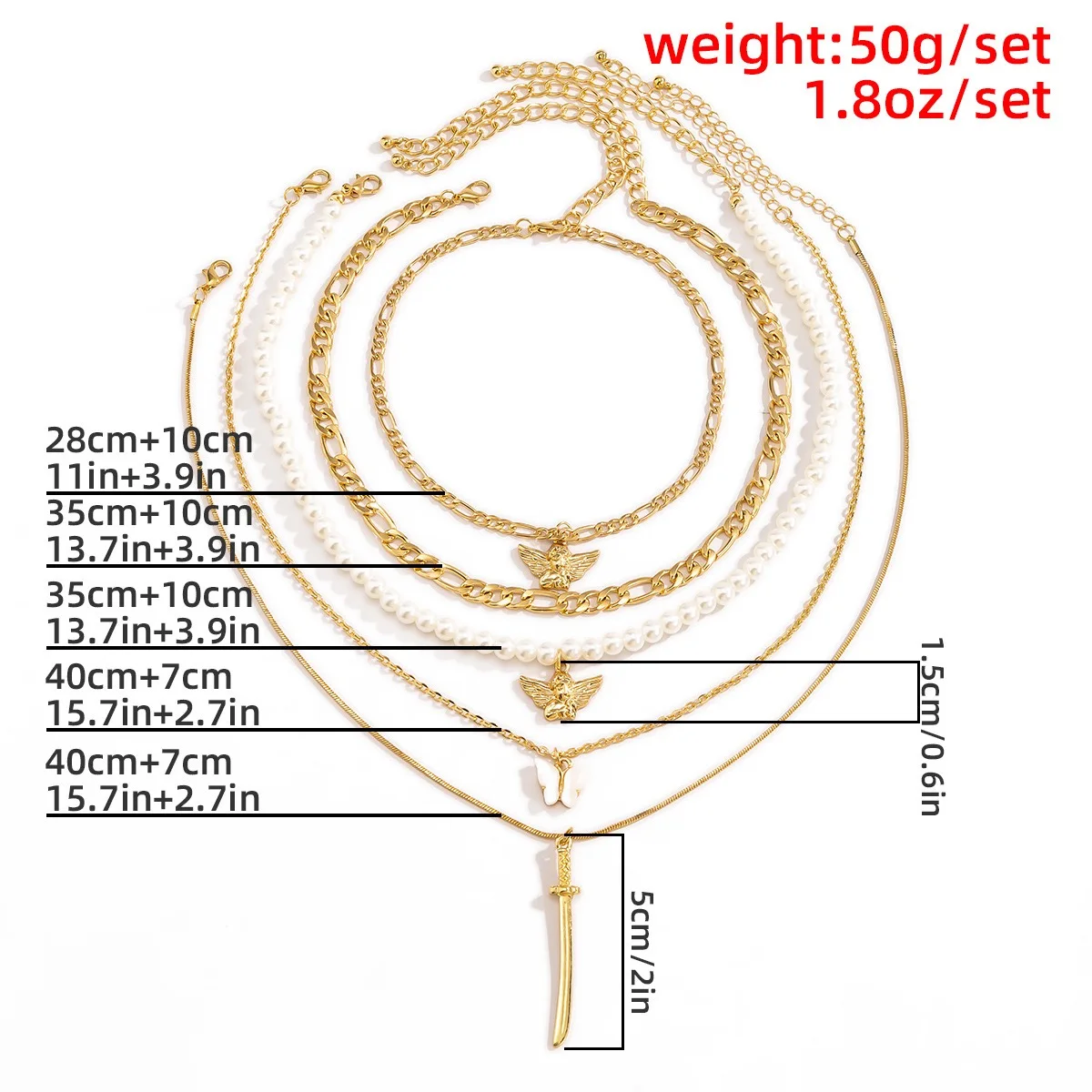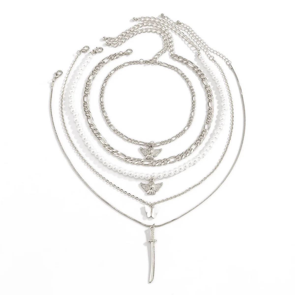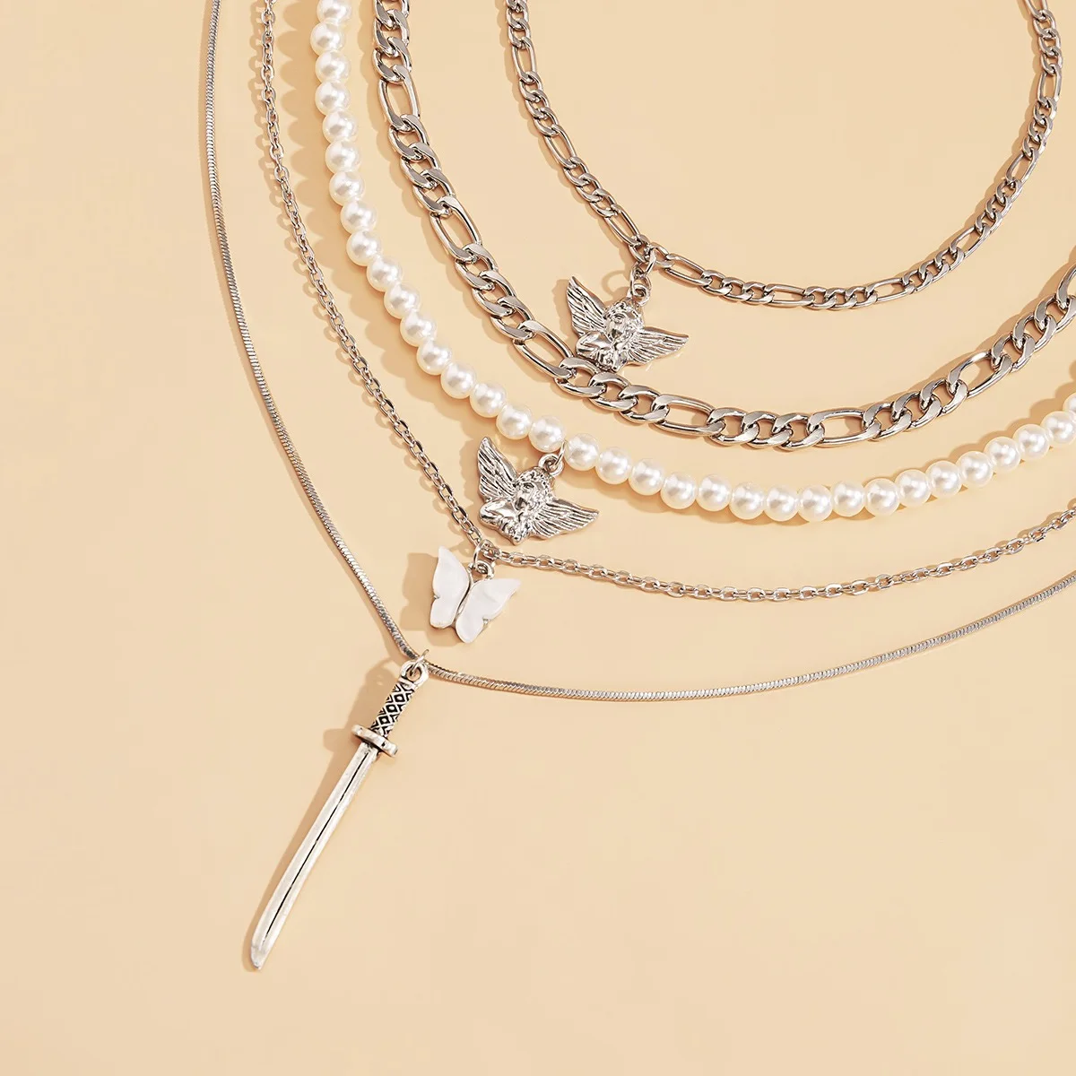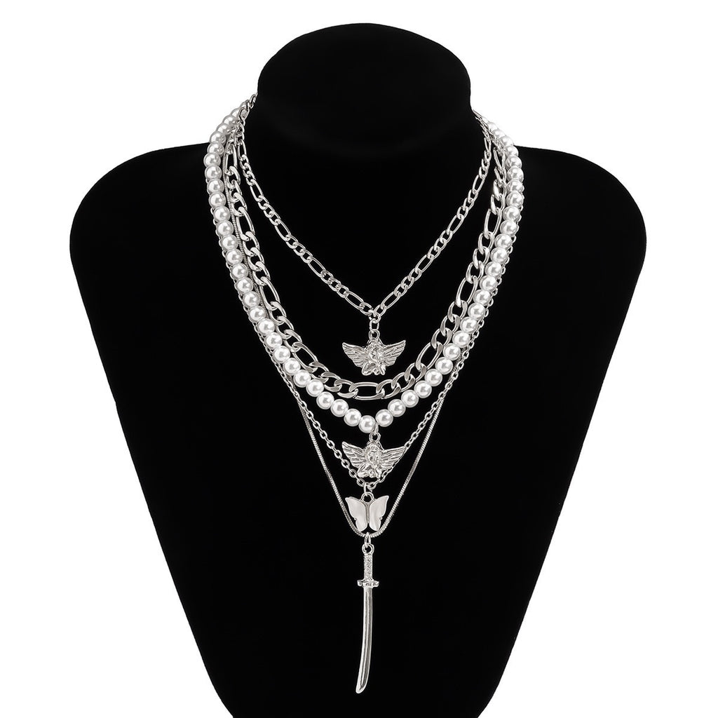 Ladies Multi-layer Chain Item Imitation Pearl Butterfly Pendant Necklace Multi-layer Gold Chain Party Jewelry 2021 New