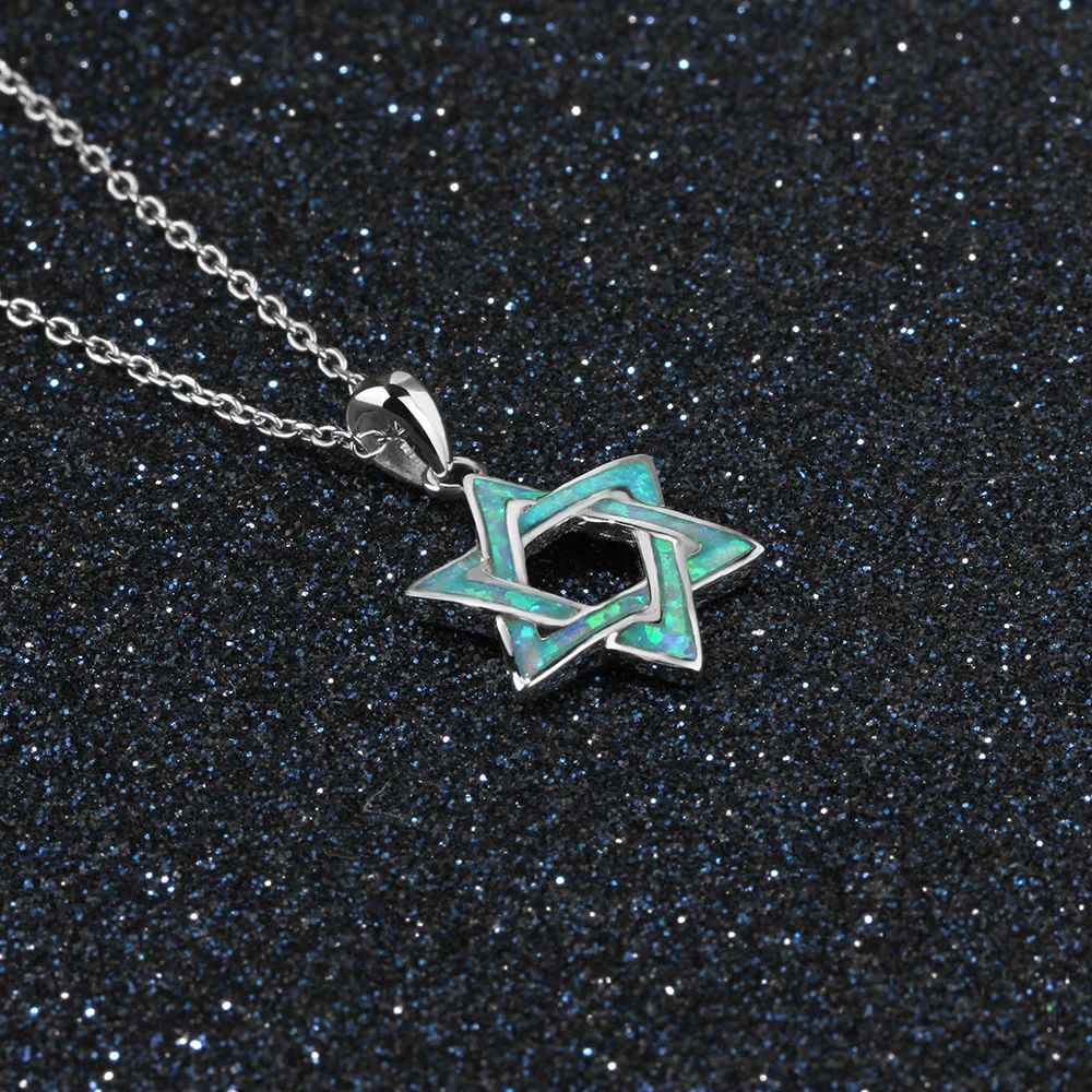 925 Sterling Silver Necklace Individual Six Awn Star Blue Fire Opal Pendant Necklace for Women Genuine Fine Jewelry Gift