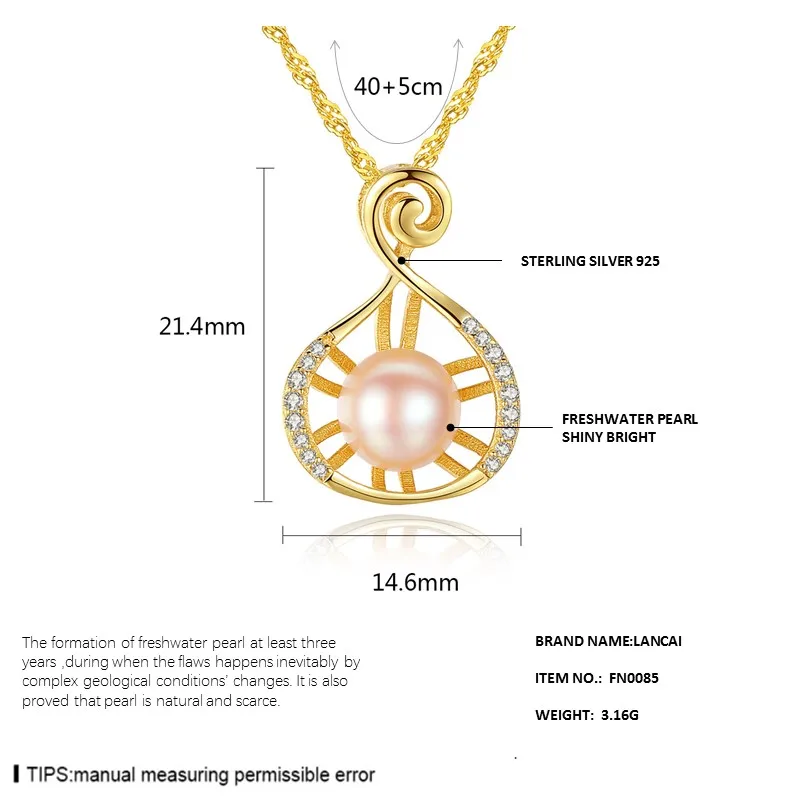 Fashion 925 Sterling Silver Necklace 8-8.5mm Natural Pearl Water Drop Pendant Necklace for Women Fine Jewelry